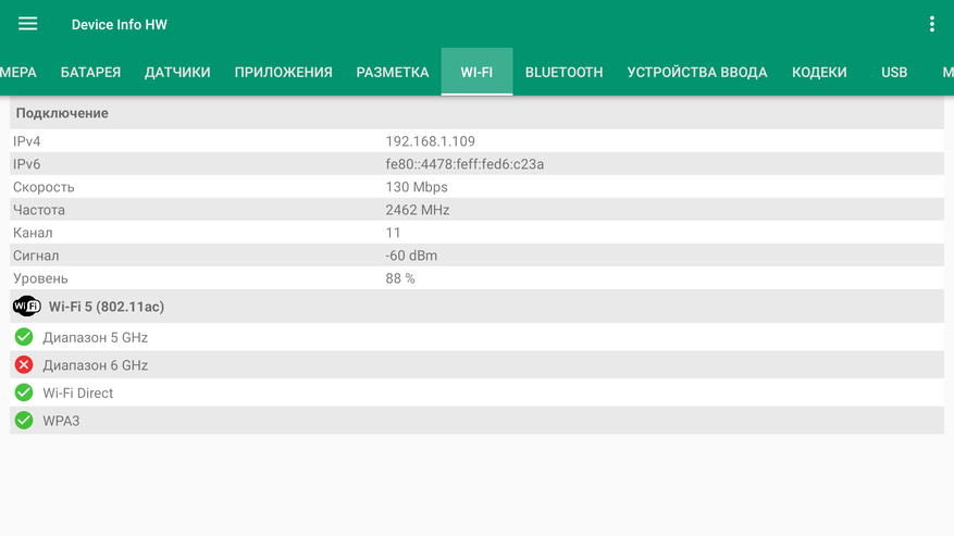 Интернет здесь подключается через Wi-Fi, который умеет работать на двух диапазонах (2.4 и 5 ГГц), что дает стабильность соединения, да и Bluetooth тоже имеется. Так что подключать внешние устройства не составит труда.