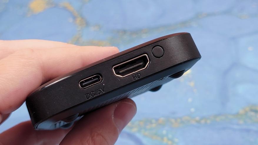 На тыльной стороне разместили HDMI разъем и USB-C для питания на 5V. Также есть кнопка reset.