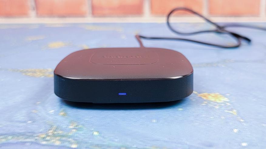 На лицевой стороне небольшой светодиод. Он тусклый и не мешает в темноте. Синий при работе, красный в отключенном состоянии.