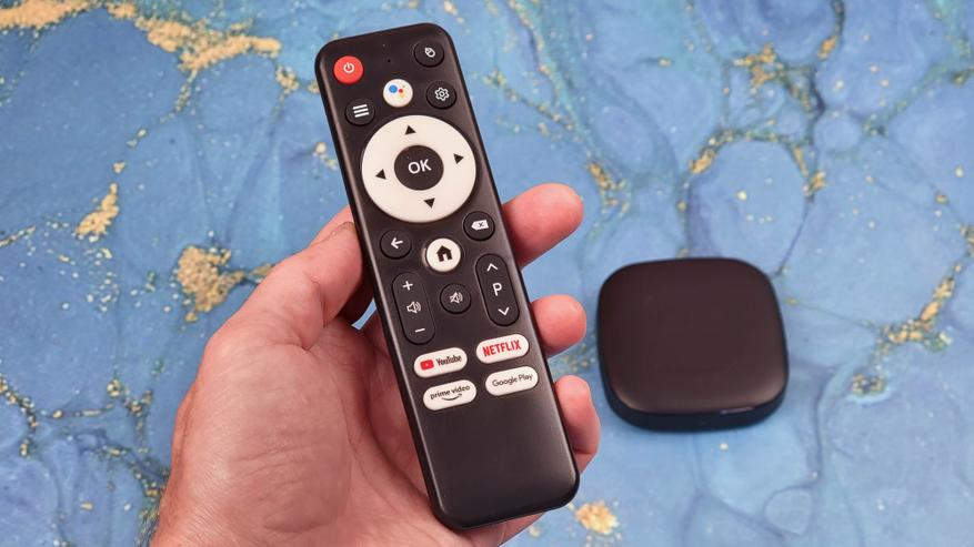 Начнем с пульта. Он здесь достаточно неплохой. Похож на гугловский G10 с аналогичным размером и расположением кнопок. Но немного более скруглен на гранях, а также имеет кнопку включающий режим виртуальной мыши (не аэро). Голосовой поиск работает, соединение через Bluetooth нормальное. Единственное, что щелкают кнопки достаточно громко. Но такое встречается и в дорогих приставках.