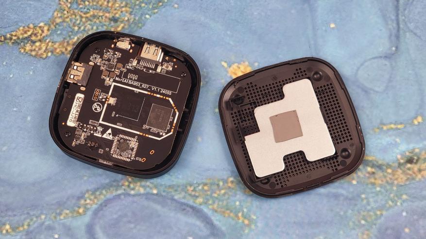 Именно на нижнюю часть выведен процессор, который через термо прокладку отдает тепло на металлическую пластину.