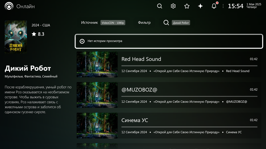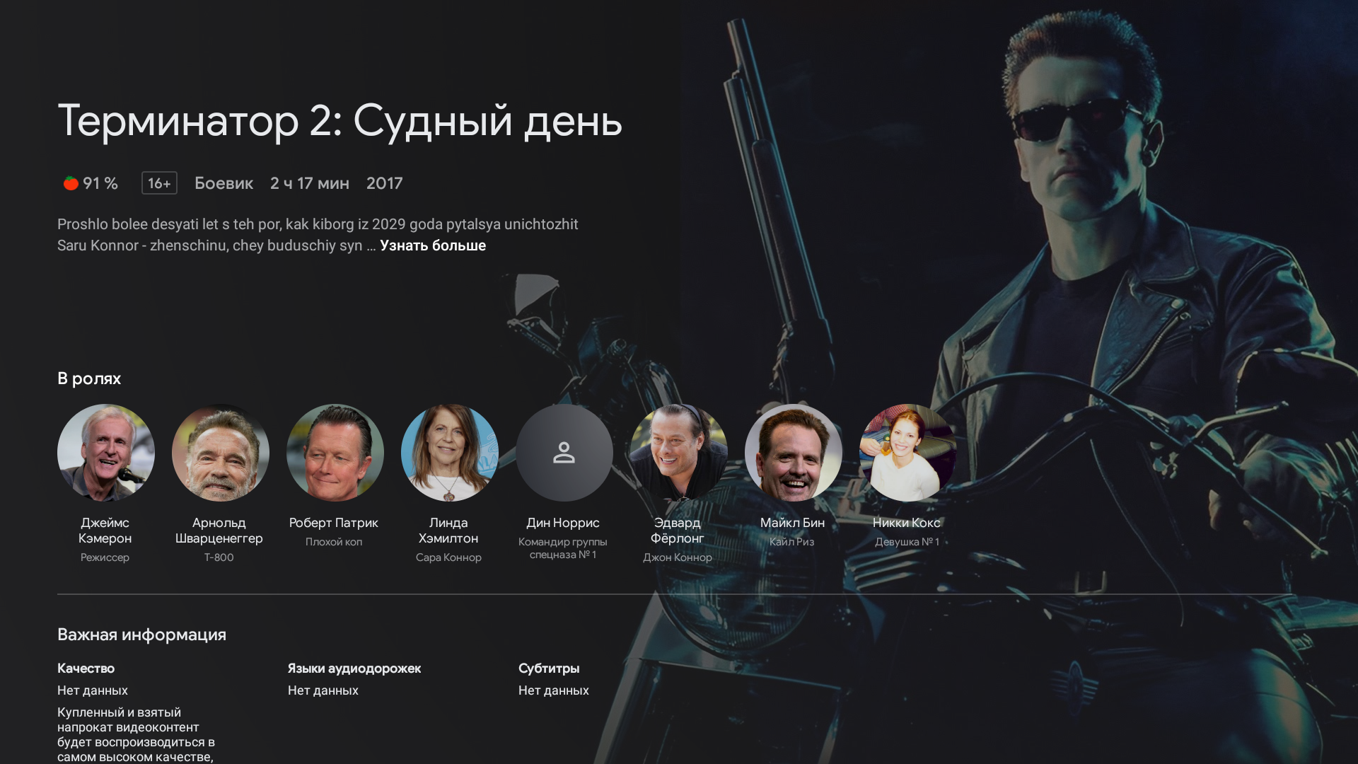 Однако из системы поиск работает исключительно по гугловским источникам. Т. е если вы попросите найти фильм Терминатор 2, то вас отправит на страничку Google Movies. А вот если вы воспользуетесь поиском в Lampa, то уже будет искать внутри приложения.