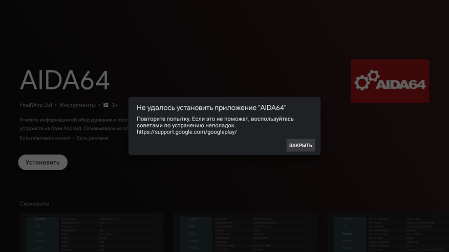 Далее начались танцы с бубном. При попытке установить некоторые приложения я столкнулся с тем, что они просто не устанавливаются. И в основном это диагностические утилиты, вроде Aida 64, CPU-Z или бенчмарки, вроде Antutu, Geekbench. Либо производитель специально подшаманил прошивку, чтобы правда не вылезла наружу и покупатель не узнал, что его в некоторых моментах обманывают. Либо устаревшая система не поддерживает некоторые новые приложения. А возможно оба этих факторов. Но факт в том, что ни с официального магазина, ни со стороннего, ни с флешки, мне установить некоторые приложения не удалось.