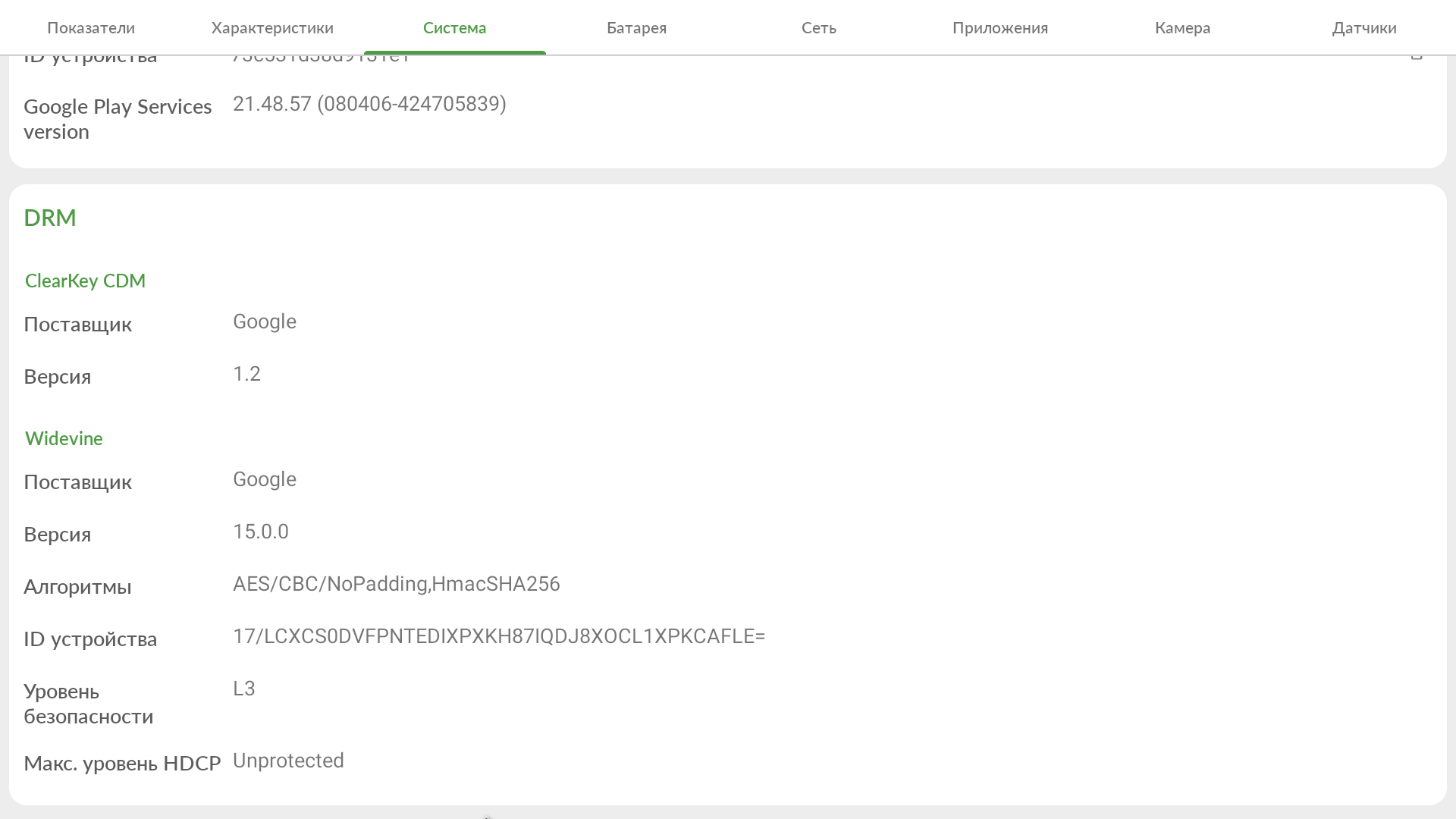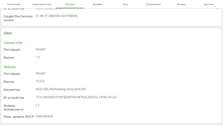 Еще одним интересным показателем является DRM Widivine с уровнем безопасности L3. Так что ни о каком Netflix, который красуется на коробке, и речи быть не может. Ну точнее может, но только в SD качестве. А именно 854 x 480 пикселей. Вы уверены, что хотите смотреть платный сервис в таком разрешении? Некоторые другие онлайн кинотеатры также могут ограничить разрешение видео из-за Widevine DRM. Что в принципе не касается пиратских сервисов и приложений, там на этот показатель никто не смотрит.