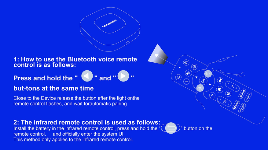 При первом включении делаем сопряжение пульта с приставкой и настраиваем другие базовые параметры, вроде языка и времени, подключаем свой Google аккаунт.