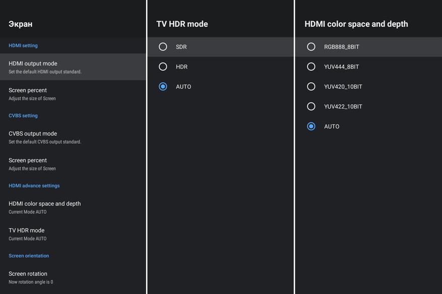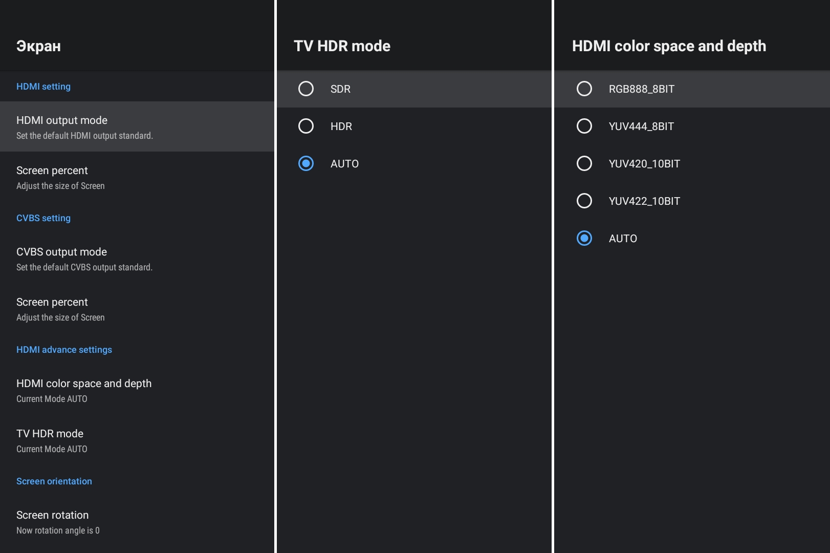 Есть поддержка HDR. Только и здесь не все гладко. В режиме Auto телевизор Sony на HDR не переключается. В принудительном режиме HDR переключается, но работает на постоянке. Причем если выключить и включить приставку, то телевизор снова переключается на SDR. При этом в настройках стоит HDR. И чтобы снова переключить телевизор на HDR, нужно зайти в настройки и снова выбрать уже выбранный режим. Более того, даже при включенном HDR я не заметил, чтобы HDR фильмы отображались корректно. Т. е телевизор просто переходит в HDR, но воспроизводит контент, как SDR. В общем не работает тут нормально это.