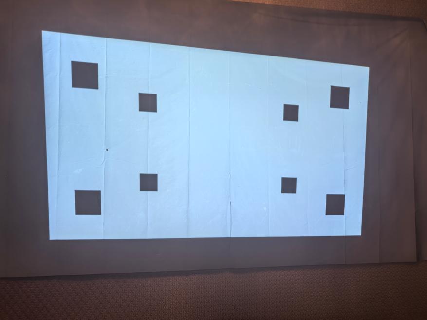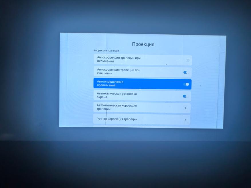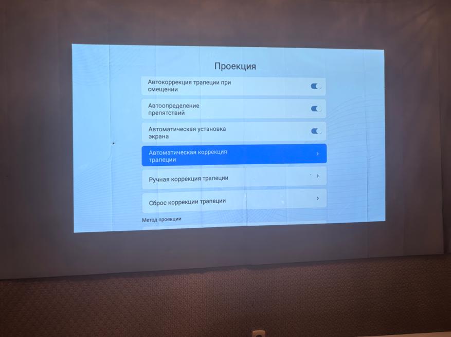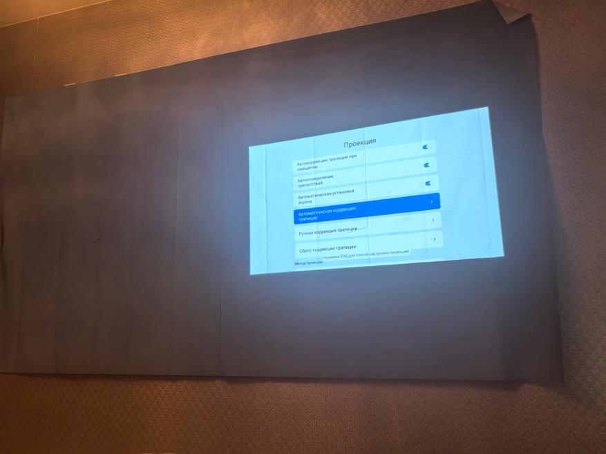 Последние два пункта оставить в списке, чтобы была полная картина возможностей. Изначально настроил коррекции, когда проектор находился под углом к экрану, потом поставил его в прямую видимость экрана и проекция получилась под углом.