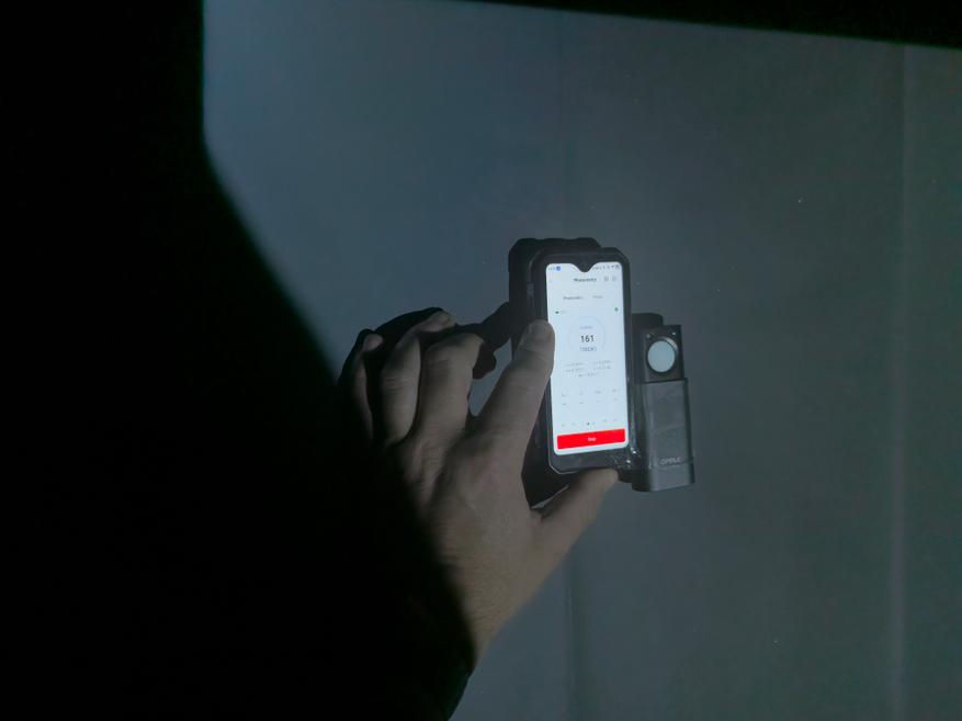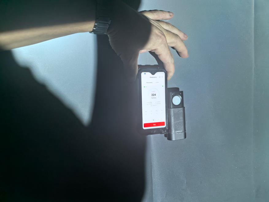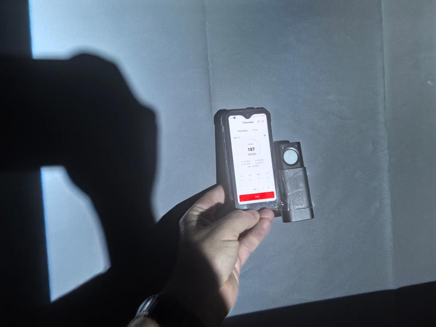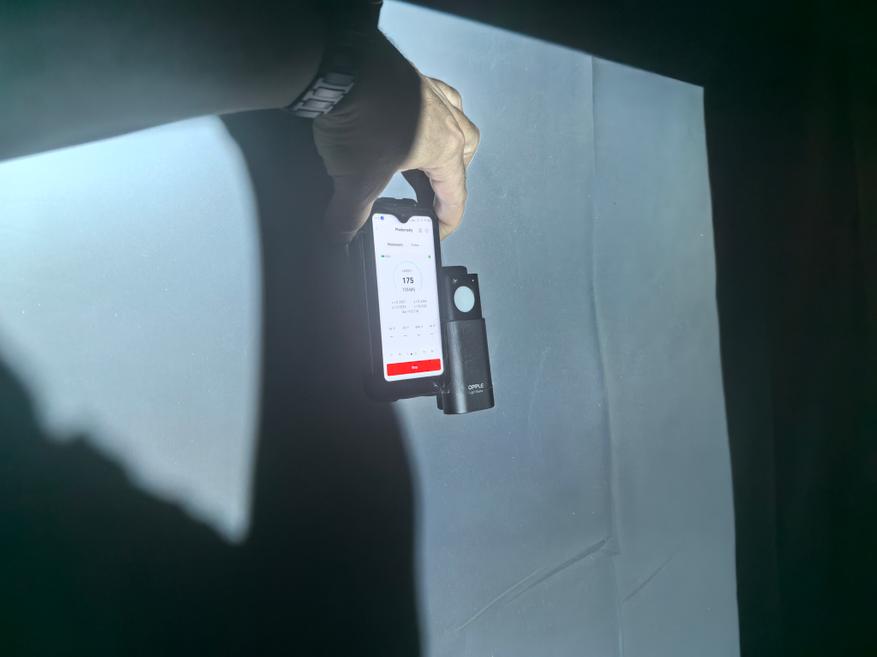 Для определения ANSI Lumen буду использовать Opple Light Meter 4. Площадь проекции уже известна. Оценка Opple Light Meter дала следующие результаты: от 161 до 254 Лк. Основываясь на цифрах, оценочный ANSI Lumen равен 266 Lm.