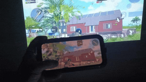 Во втором случае подключил смартфон через проекцию экрана и запустил игру PUBG Mobile. По анимации видно, что небольшая задержка есть: повороты вправо и влево не сразу отображаются на экране. Тест на игры при беспроводном подключении не был пройден, так как через пару минут игры начались зависания и потеря кадров. В более спокойных случаях, как перелистывание страниц, просмотре фотографий или похожем, проблем не должно быть.