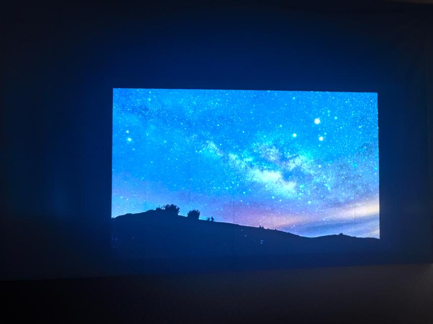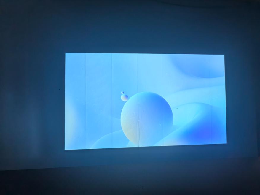 У проектора есть спящий режим. В нем прокручиваются обои, которые также могут охарактеризовать качество цветопередачи. Показал их на фотографиях ниже.