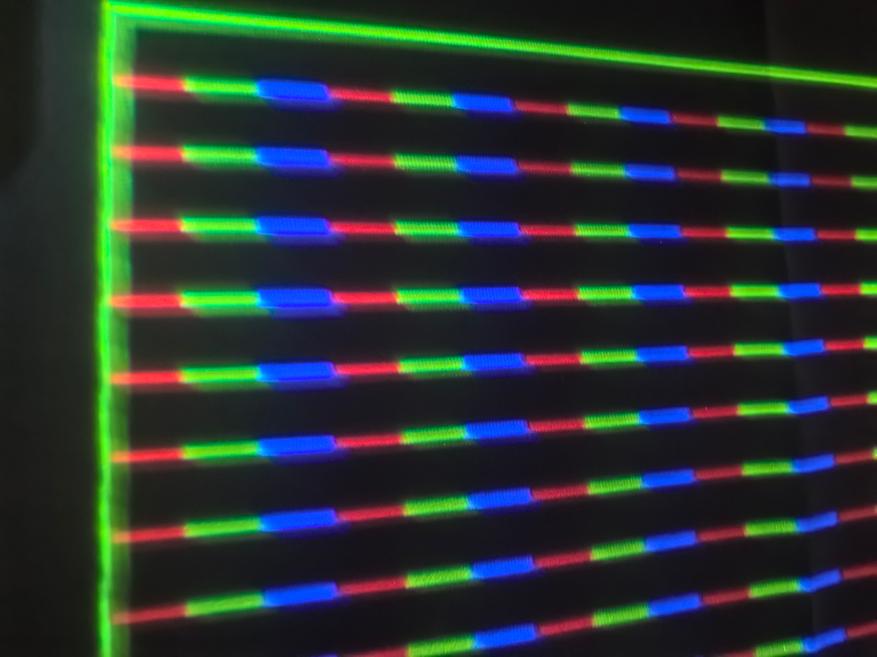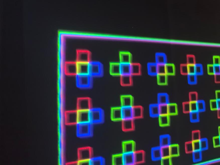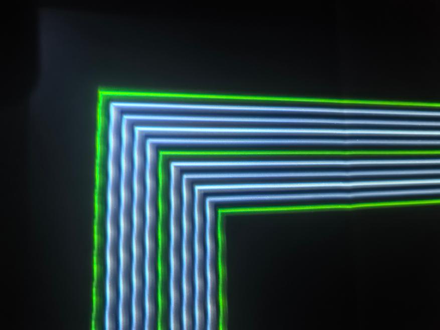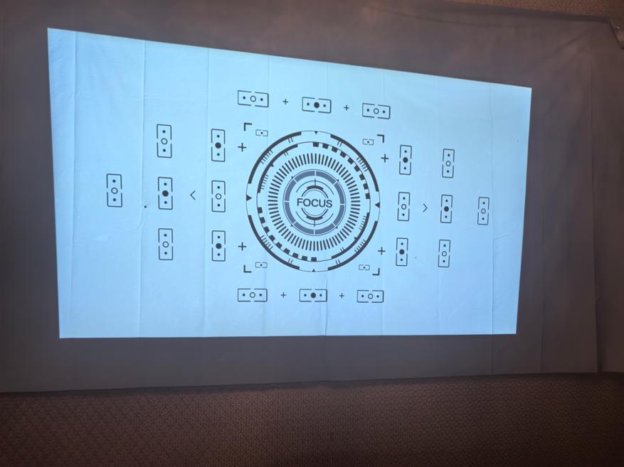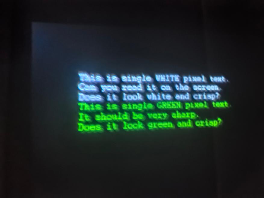 Следующие фотографии были сделаны в верхнем углу проекции. По ним видео, что качество хуже. Об этом говорил ранее и видно по оценкам яркости с Opple Light Meter 4, чтобы углах она меньше. Картинка четкая в центральной части. Четкость углов настраивается хуже.