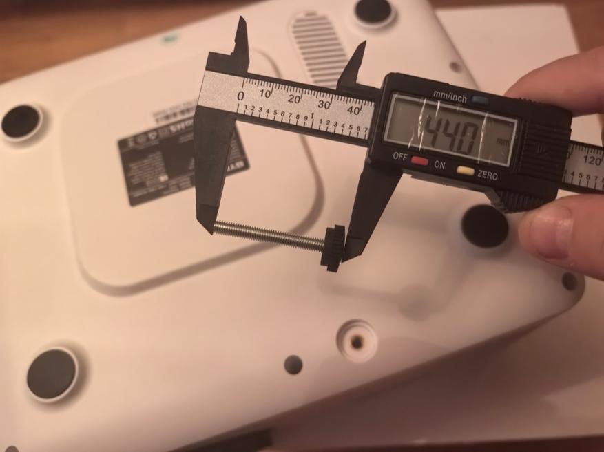 Проектор может подниматься на примерно 33 мм над поверхностью при помощи болта. Длина его — 40 мм. Я зафиксировал Love U14 в приподнятом состоянии в 33 мм от поверхности.