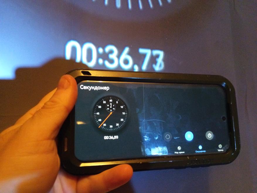 Далее провел тесты оценки задержки. В первом случае запустил секундомер и сделал фотографию в процессе. Видно, что задержка составляет 12 мс.