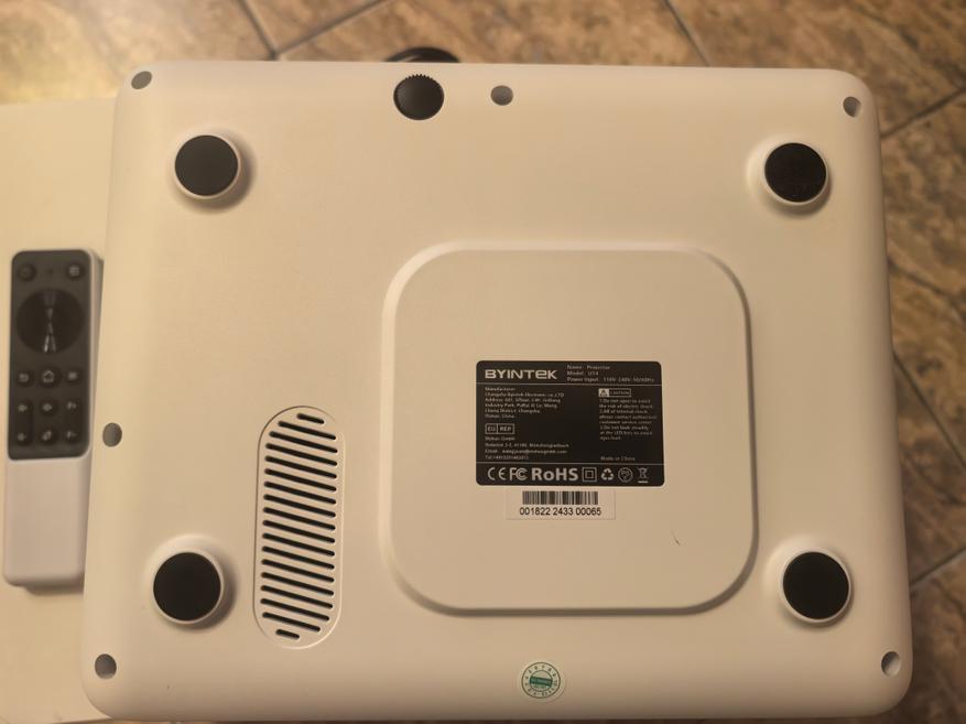 На двух фотографиях показал, как выглядит проектор сверху и снизу. Крепления 1/4 для установки на треногу у Byintek Love U14 нет. Отсутствие крепления компенсирует больший off-set, чем у других моделей.