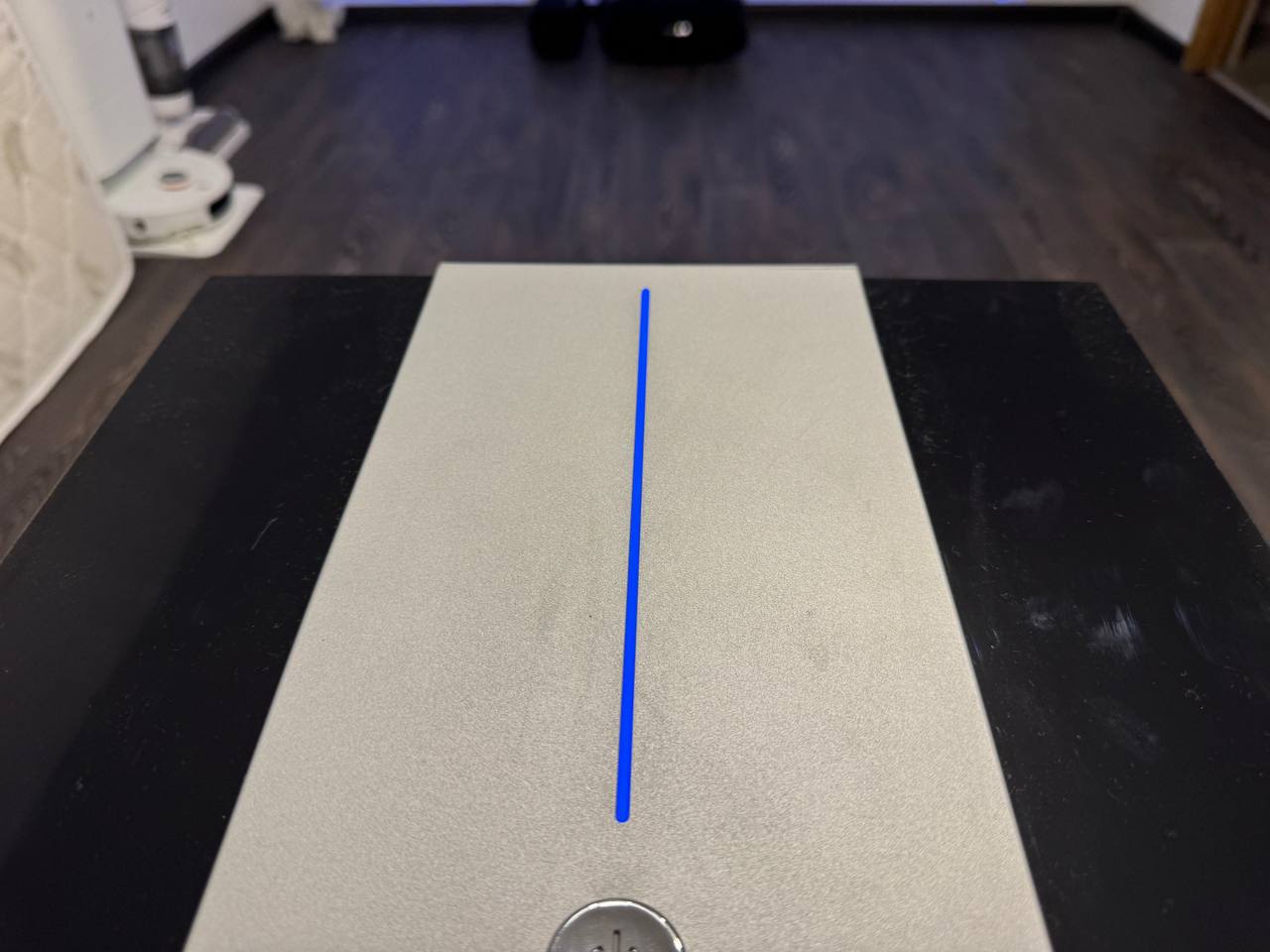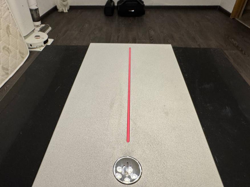 Сам проектор впечатляет габаритами. Он тяжёлый, увесистый и сразу даёт понять, что внутри стоит крупная линза, а значит картинка будет хорошего уровня. Материалы корпуса спорные. На ряду с качественно исполненными элементами сочетающими матовый пластик с глянцевыми вставками, есть и откровенно дешево выполненная включения и элементы верхней панели. А вот индикатор работы, представленный длинной полосой с подсветкой — смотрится футуристично.