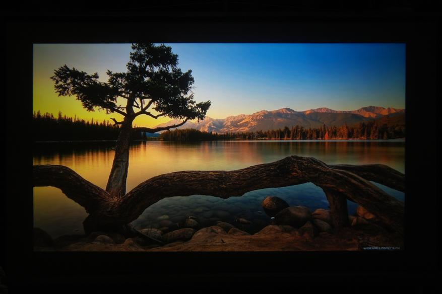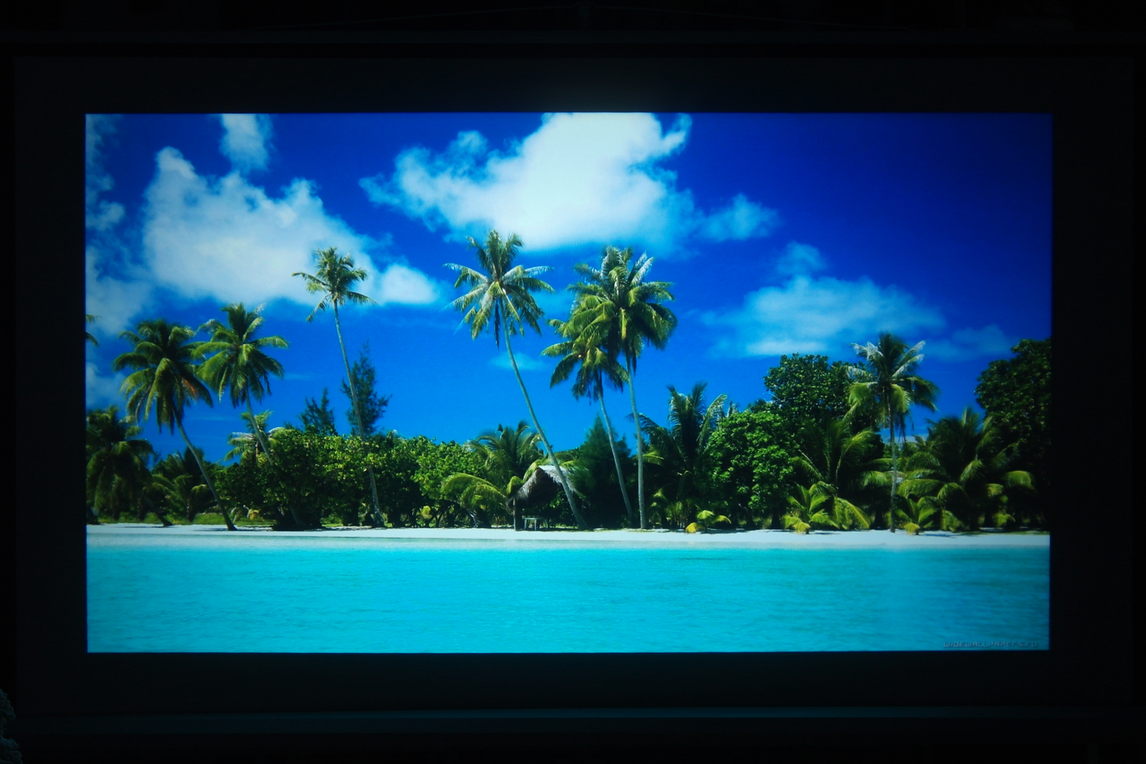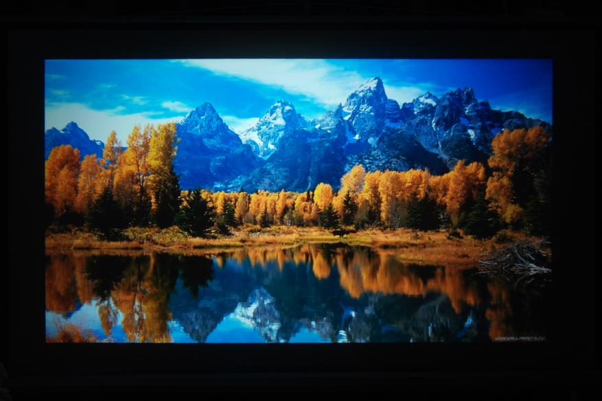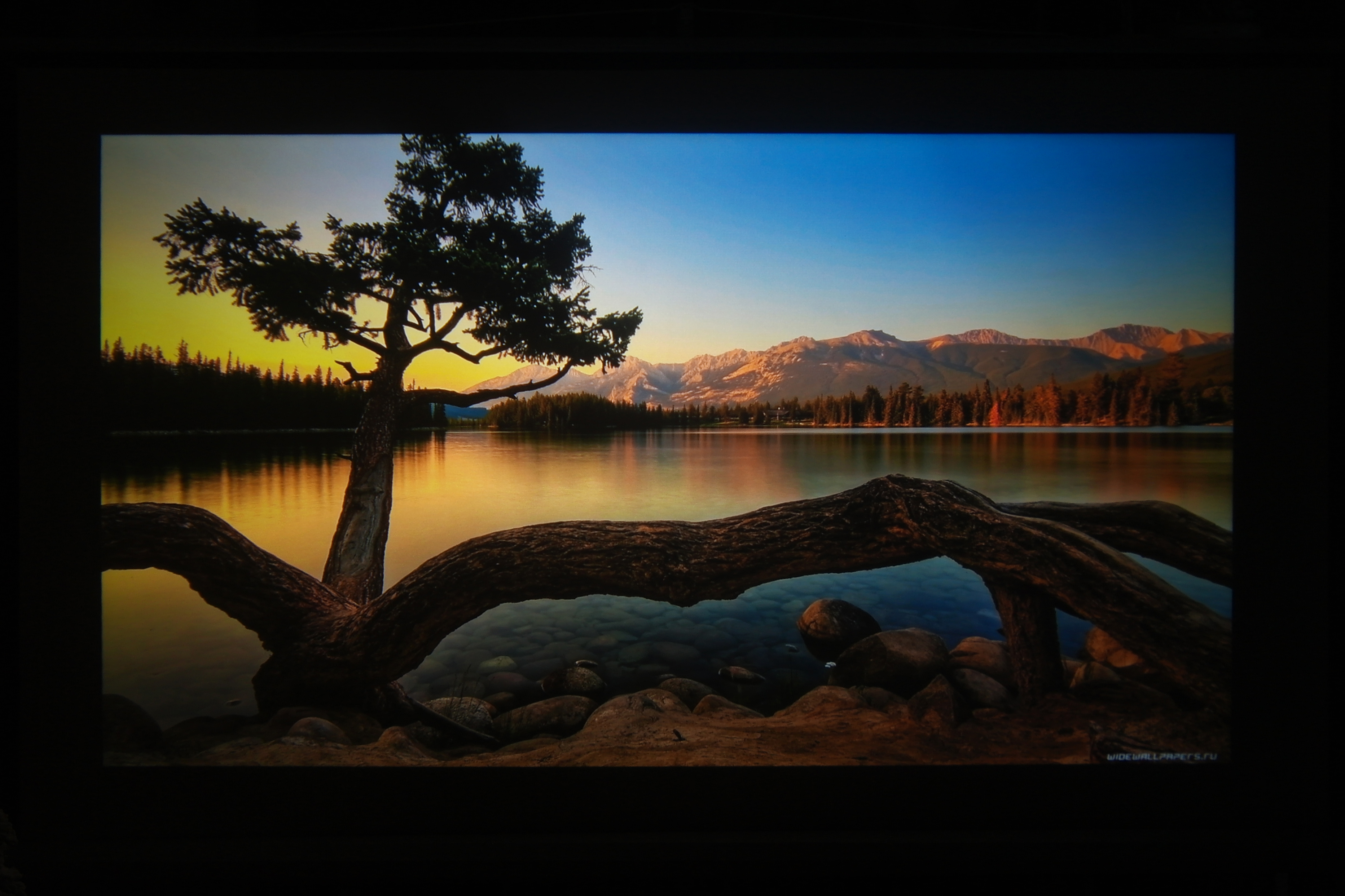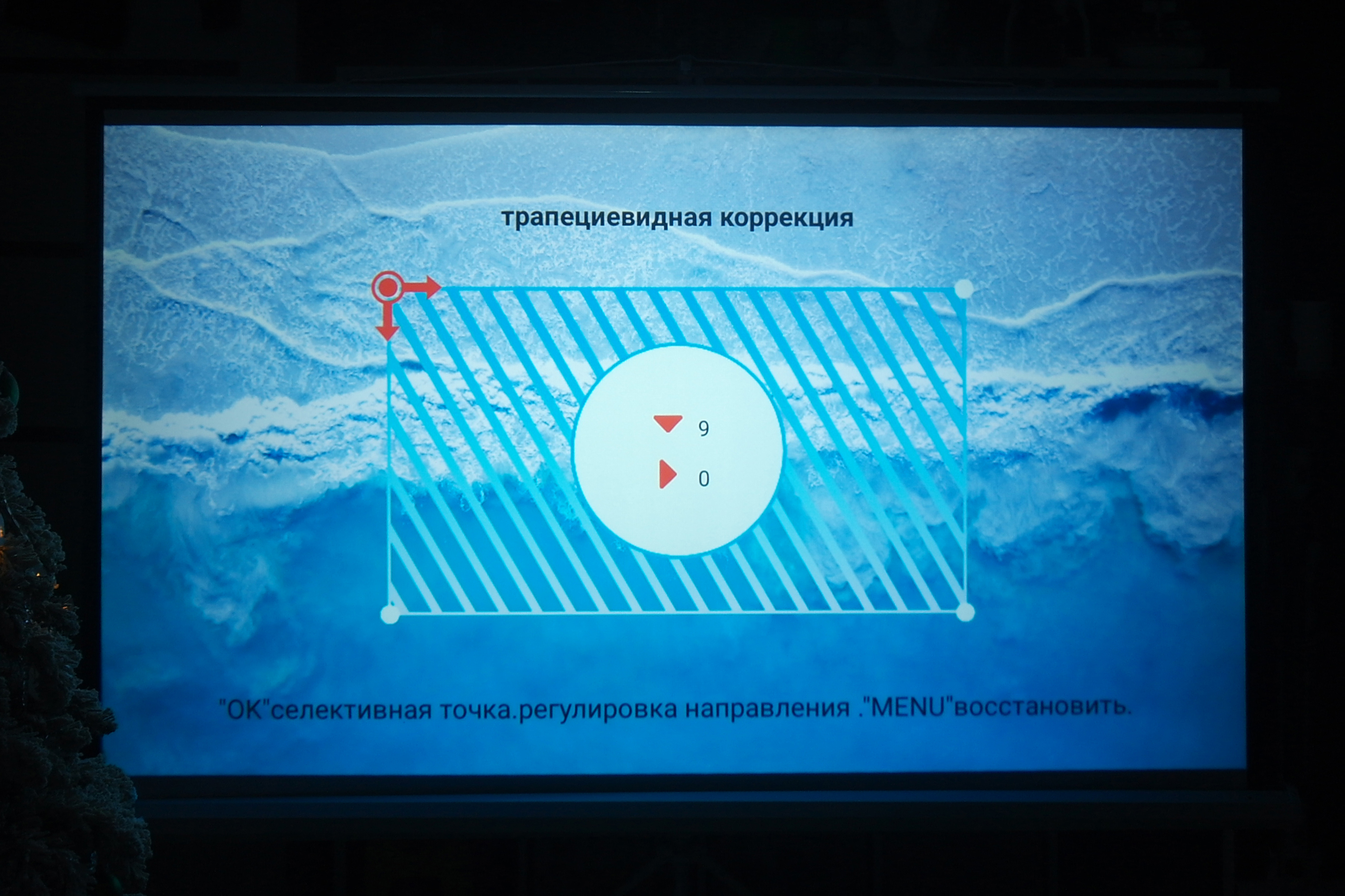 Переходим к тестированию. Основное название данного экрана — использование совместно с моим проектором TouYinger D8. Максимальный размер проекции может составлять 120 дюймов, что в масштабах квартиры довольно неудобно, так как необходима стенка с диагональю 3 метра. Обычно, в качестве полотна выступает стенка, покрашенная в серую матовую краску. Такое покрытие положительно сказывается на конечном изображении, добавляя изображению яркости и насыщенности цвета. Основное нарекание — неудобно смотреть что-то нестандартное и отличное от формата 16:9, так как конечное изображение накладывается на телевизор и ТВ-тумбу (пустая стенка находится между ними).