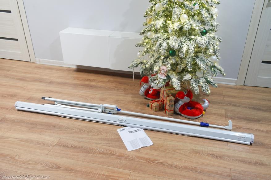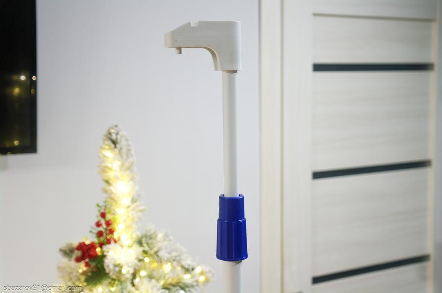 Верхняя часть состоит из удлиняющейся штанги с Г-образным носиком, на который одевается штанга корпуса полотна. Максимальная высота от пола — 294см, минимальная — 172см.