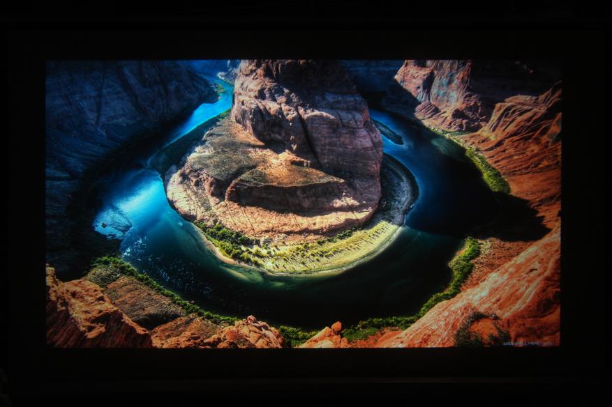 Теперь сравним статичные изображения, полученные со стены и со специального полотна для проектора. Параметры будем настраивать по встроенному экспонометру. Как можно увидеть, несмотря на схожую яркость, изображения отличаются: картинка с полотна более насыщенная и контрастная, пропала та самая «серость и унылость» при просмотре фильмов с проектора. Слева — проекция на стену, справа — проекция на полотно.
