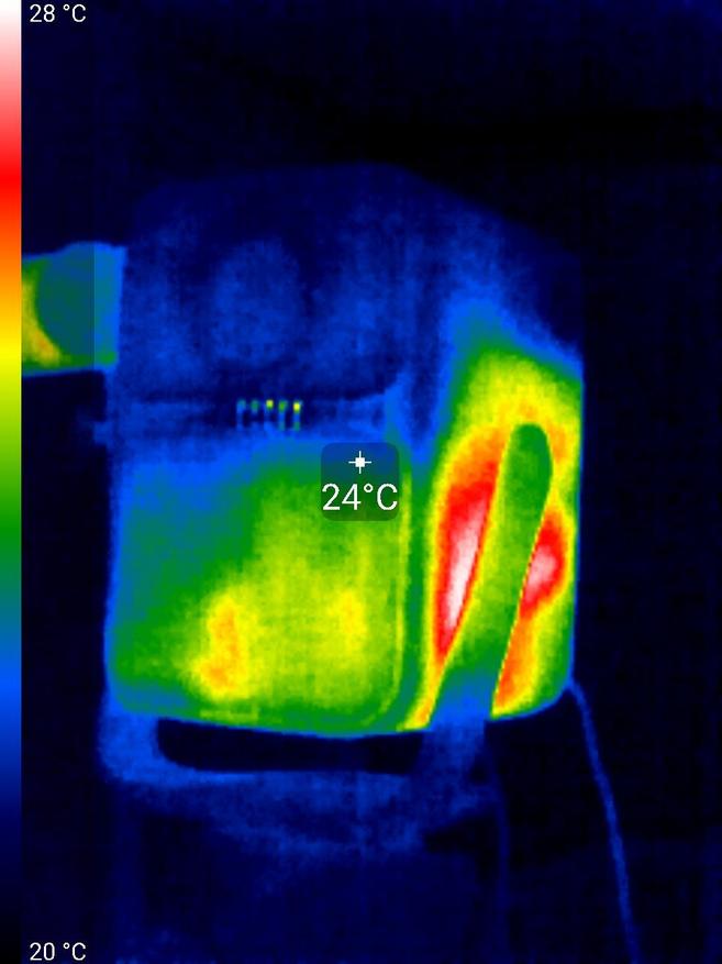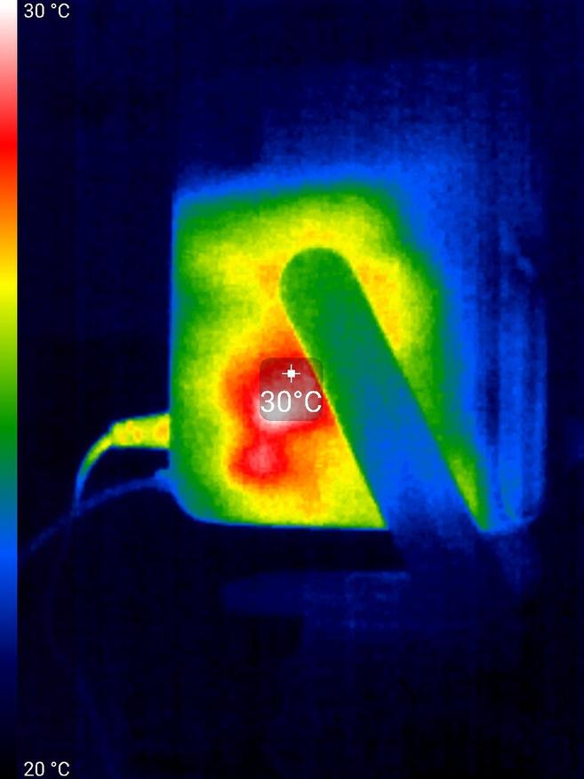 Нагрев относительно небольшой — около 40-45 градусов внутри на радиаторе матрицы, снаружи не превышает 30-35 градусов. Преимущественно корпус имеет комнатную температуру, за исключением мест теплообмена (решетка радиатора). Шумит умеренно — при просмотре фильма уровень шума от вентиляторов не превышал 25-30 дБ (смотрел в вечернее время). Работа системы автофокусировки практически бесшумная. Вывод — такой проектор можно брать для просмотра в маленькой комнате.