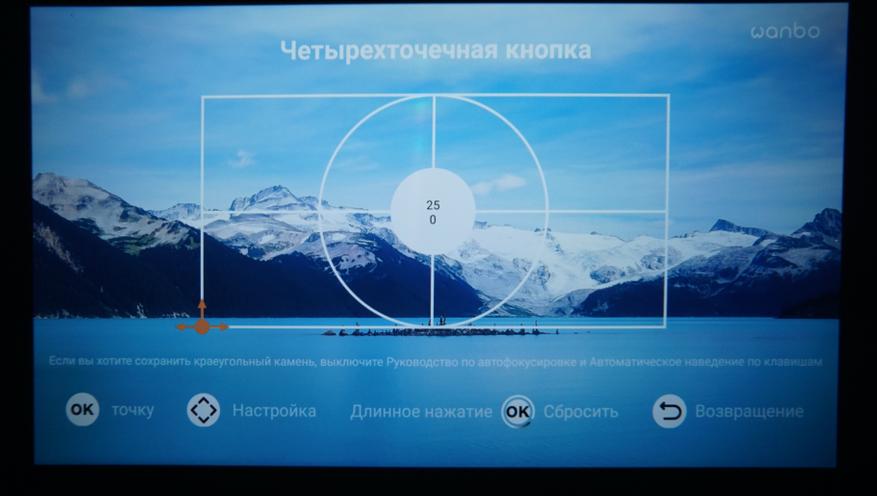Еще один плюс модели Wanbo Projector T2 Ultra — проектор самостоятельно настраивает резкость и выравнивает изображение. Предусмотрена автофокусировка и автоматическая коррекция трапеции. Выполняется это с помощью небольшого сенсора (камеры низкого разрешения), которая расположена чуть ниже объектива. Проектор использует контрастные тестовые изображения, автоматически «подгоняя» фокус и изменяя границы изображения, все это происходит без участия пользователя. Если проектор переставили в другое место или изменили угол наклона — настройка запустится заново.