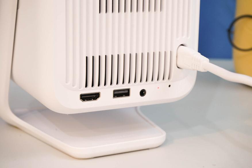 Набор интерфейсов для подключения типовой — это HDMI (вход внешнего источник видеосигнала), USB (работает с флешками и SSD-накопителями). Есть выход на проводные наушники или колонки. Также предусмотрены беспроводные интерфейсы — это сеть WiFi и модуль Bluetooth. Потребляет проектор от сети всего 65 Вт (~ 60 Вт «кушает» матрица подсветки).