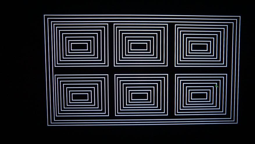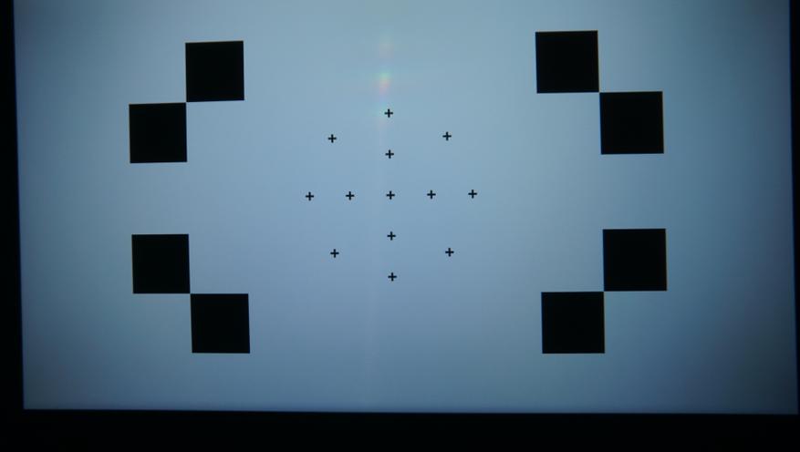 После настройки в автоматическом режиме решил проверить изображение по таблицам. Дополнительно корректировать не пришлось — линии ровные. На пульте предусмотрена кнопка быстрой фокусировки — всегда можно подстроить изображение, буквально, «на лету».