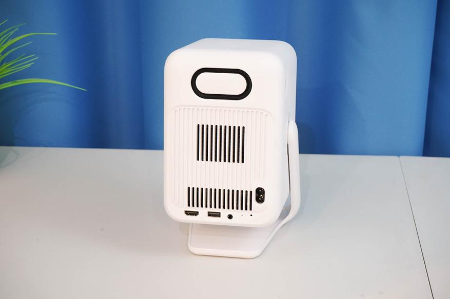 Одной из особенностей проектора Wanbo Projector T2 Ultra является встроенная подставка, позволяющая выбрать удобный угол для просмотра изображения на большом экране. Регулируется наклон в широких пределах диапазона до 120 градусов. Такое решение позволяет отказаться от различных штативов и подставок, дает возможность быстрее выставить проектор для работы. В самом подставке предусмотрена металлическая резьба 1/4″ для дополнительной фиксации, например, на потолочном креплении.