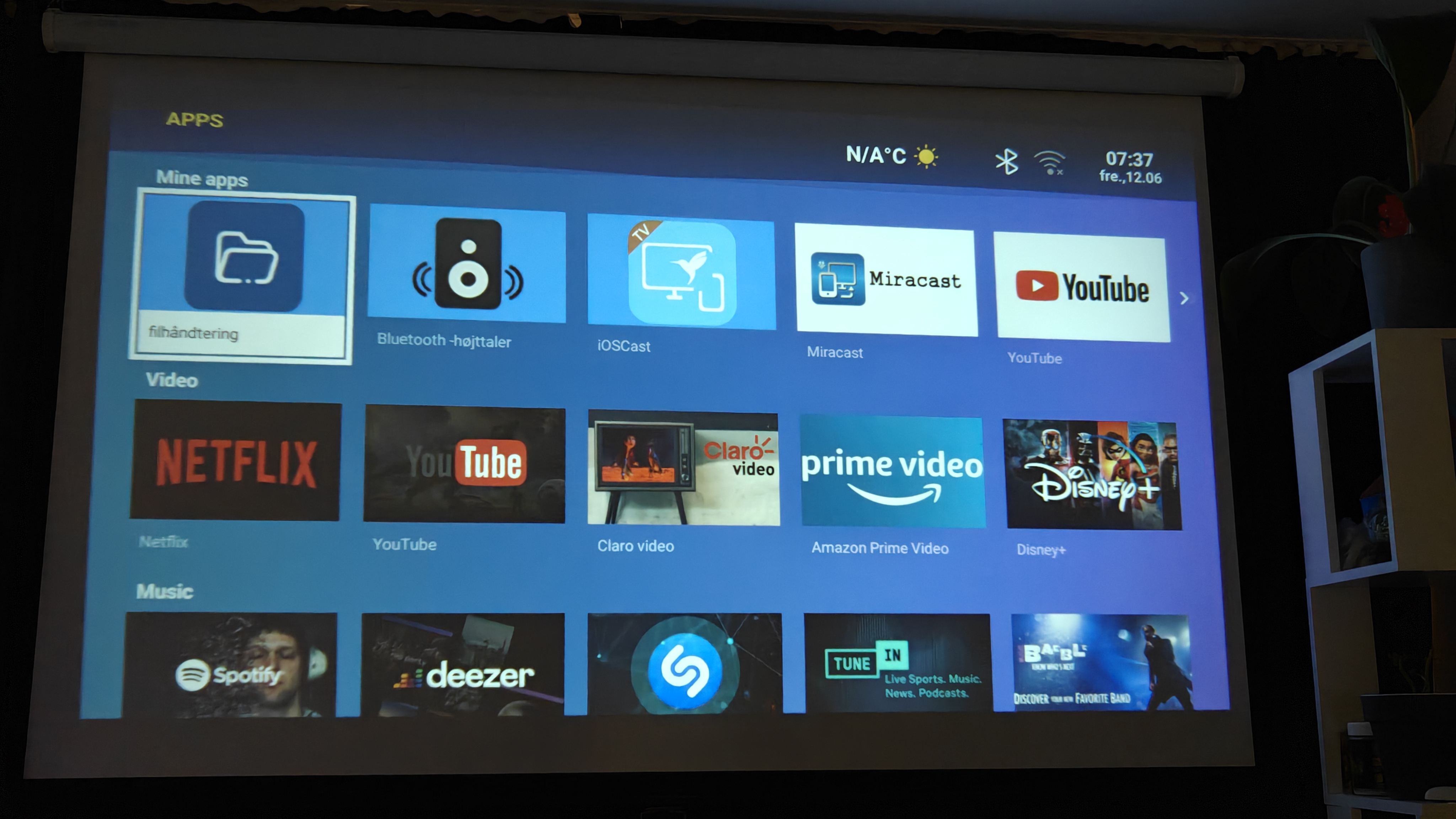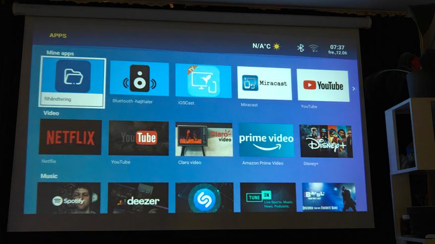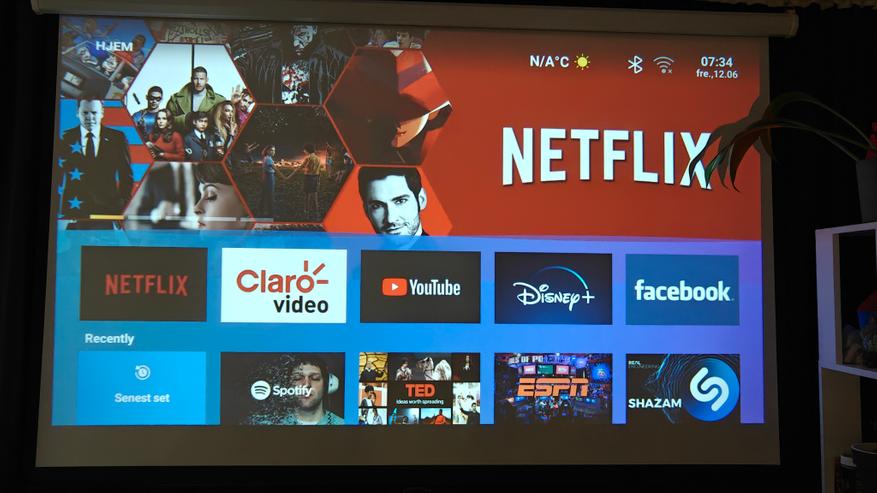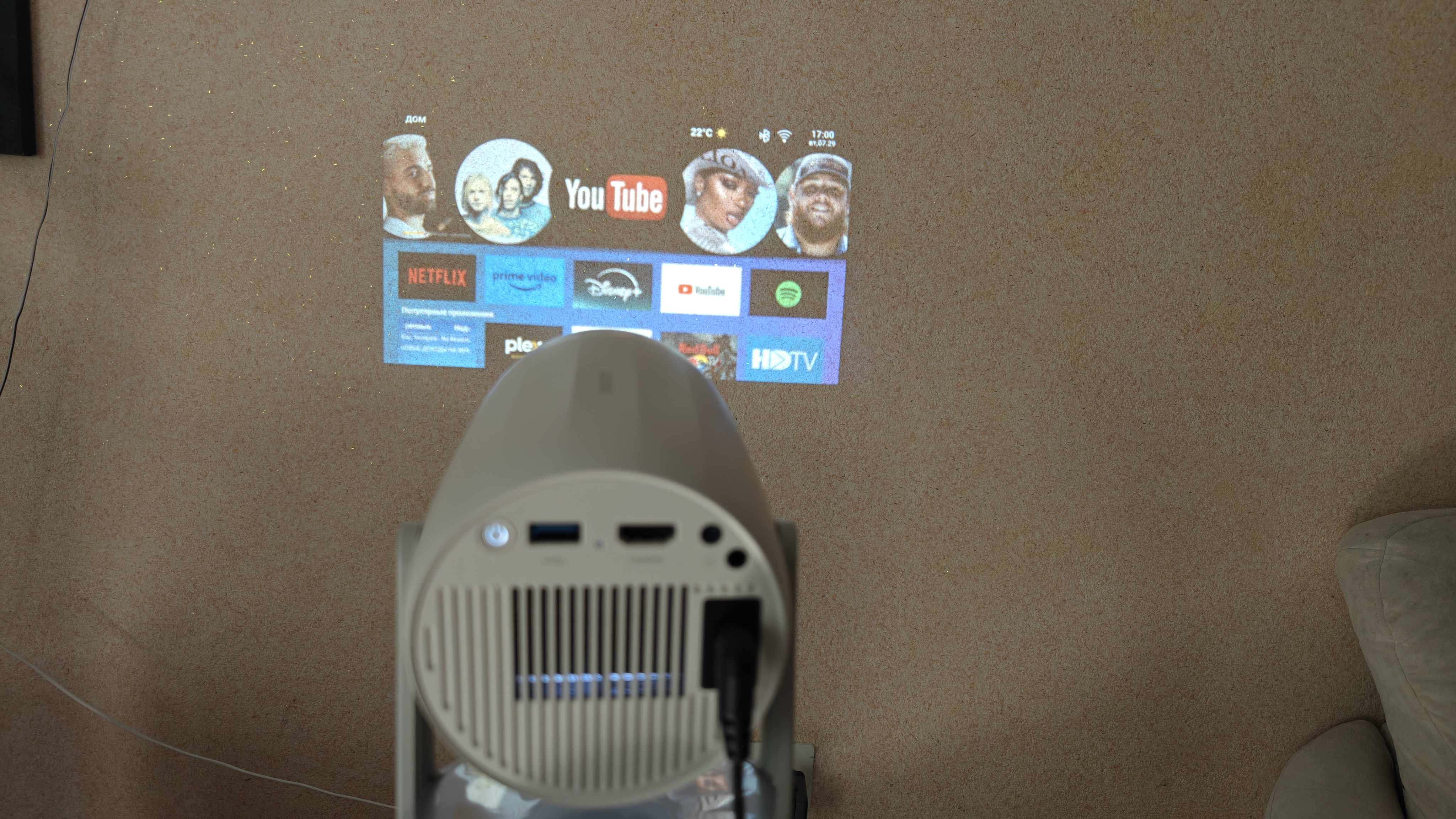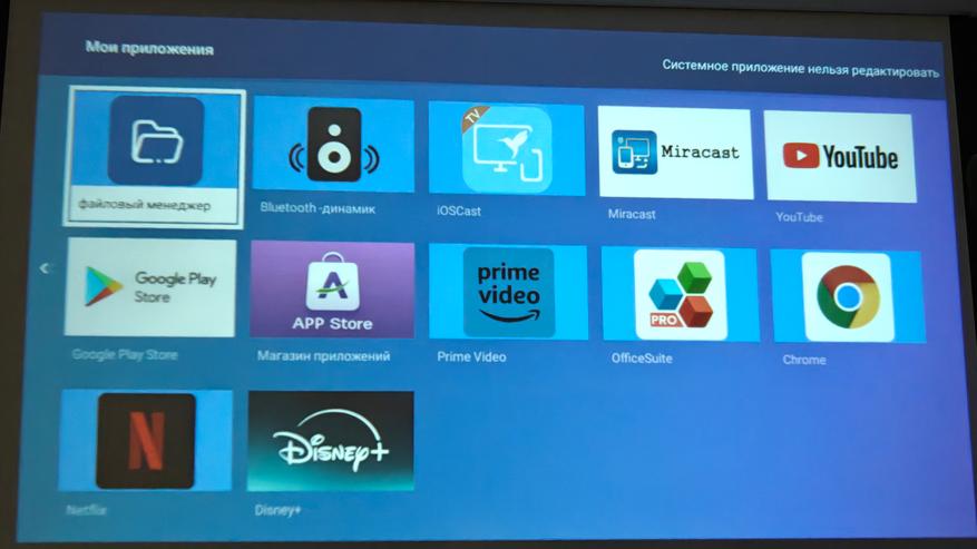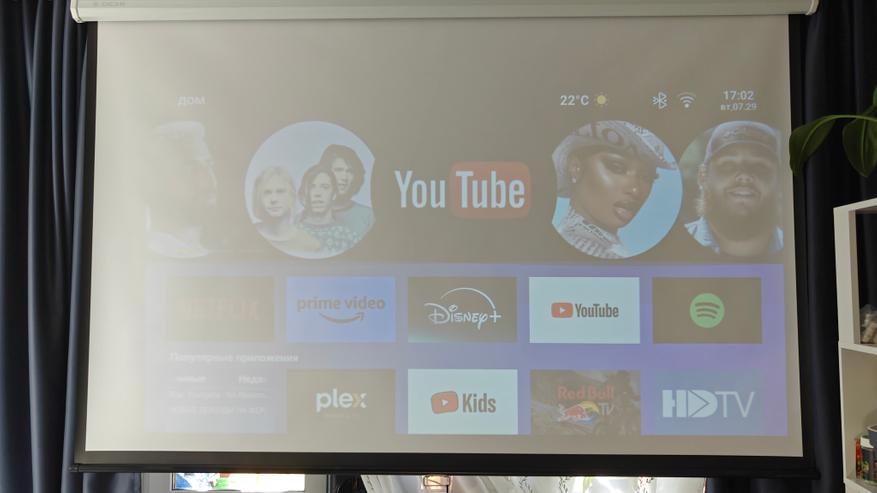 Оболочка проектора основана на Android 12, все разобрано по экранам с соответствущим контентом. На проекторе много предустановленных приложений, включая, надеюсь временно, почившие в России Netflix и Prime video. Да и Youtube без дополнительных манипуляций в современных российских условиях отказывается работать корректно. Но это не к проблемам устройства, это в принципе про современную обстановку.