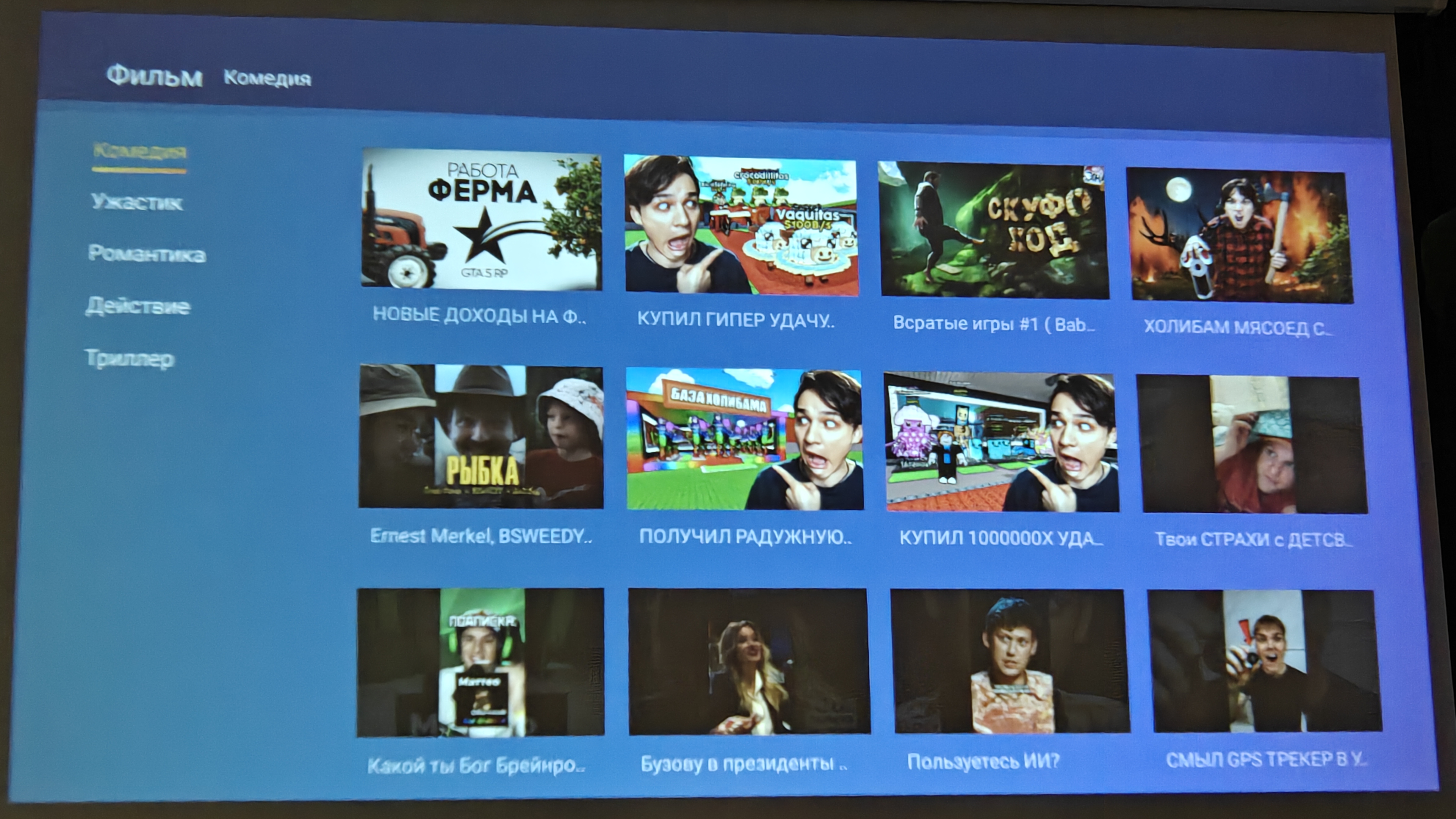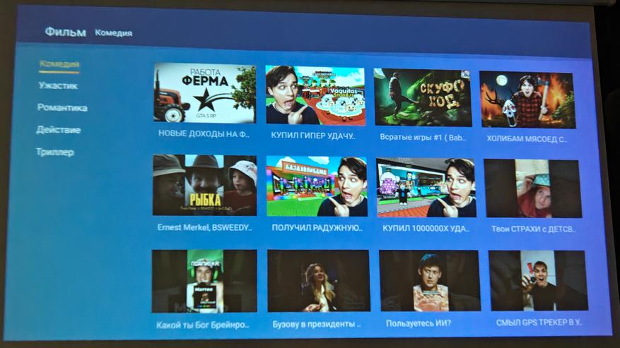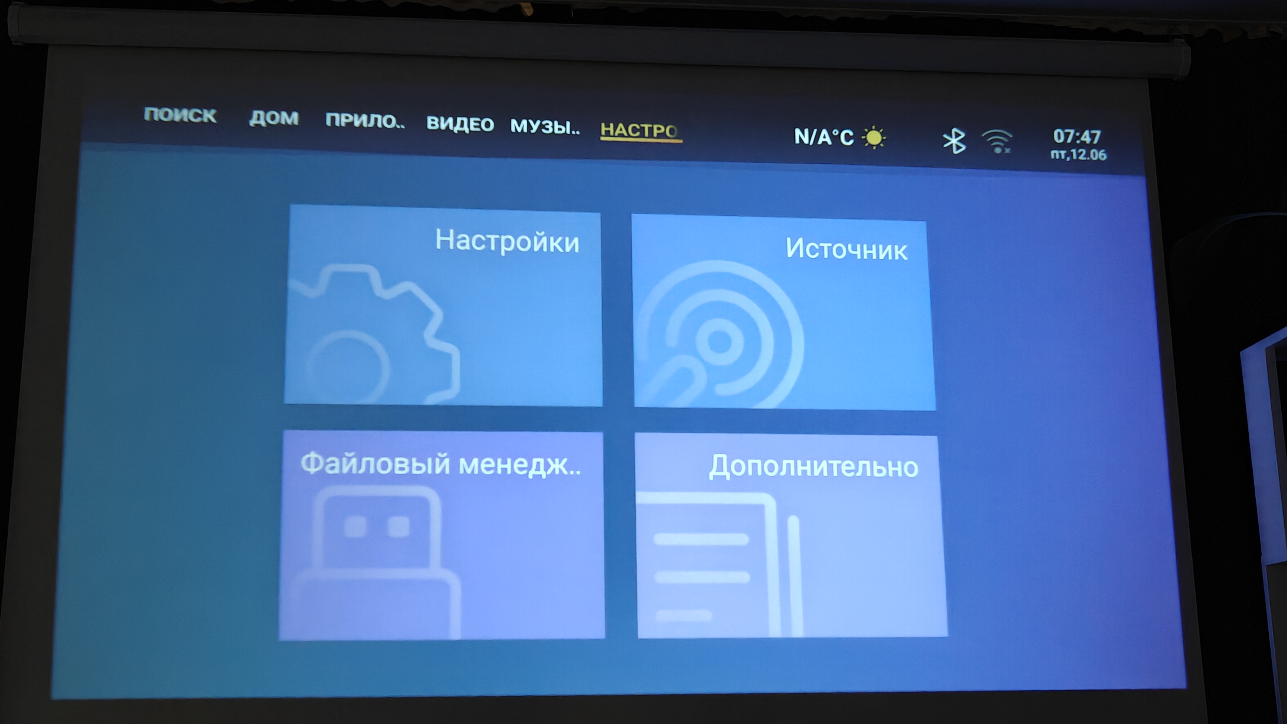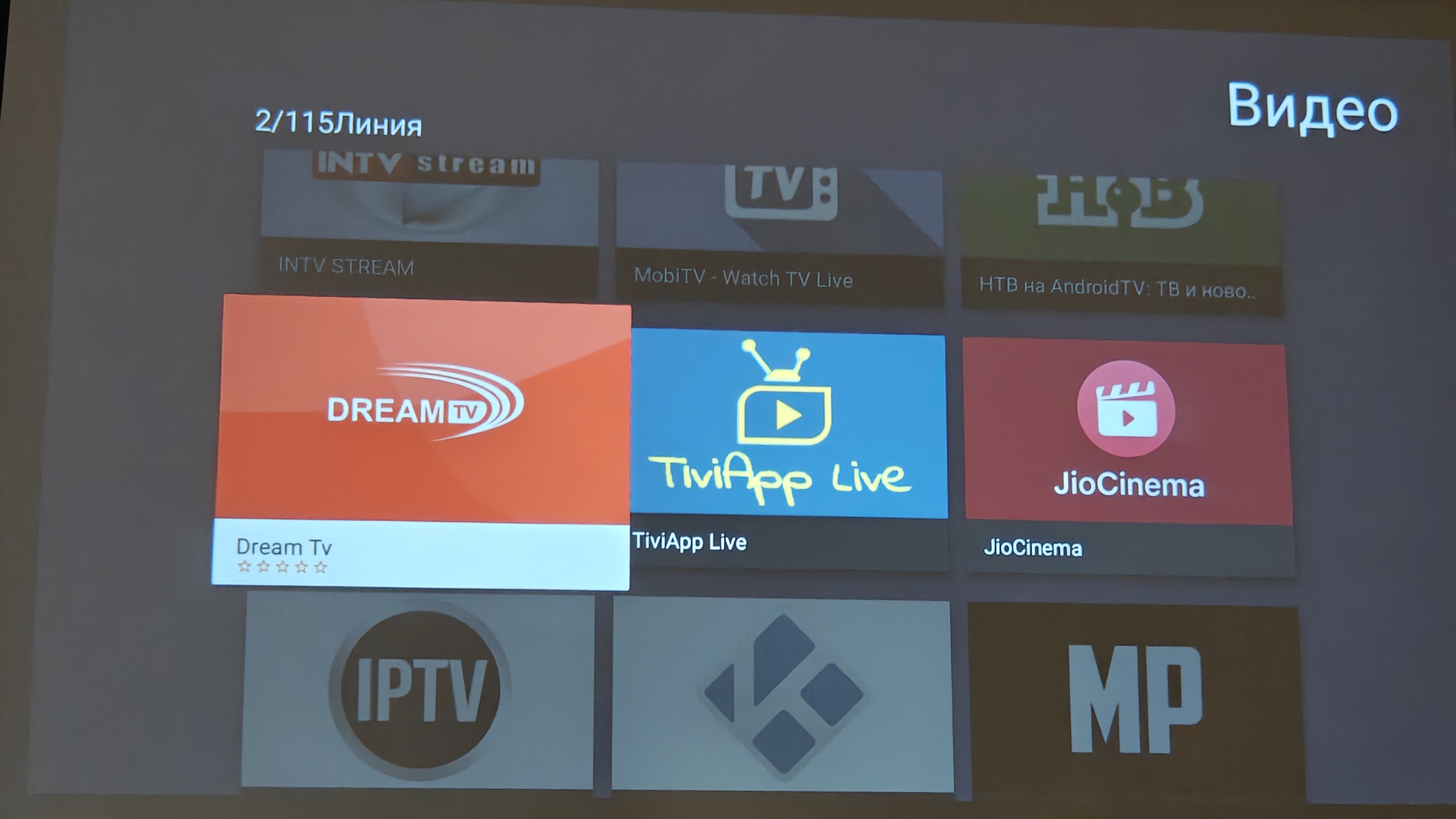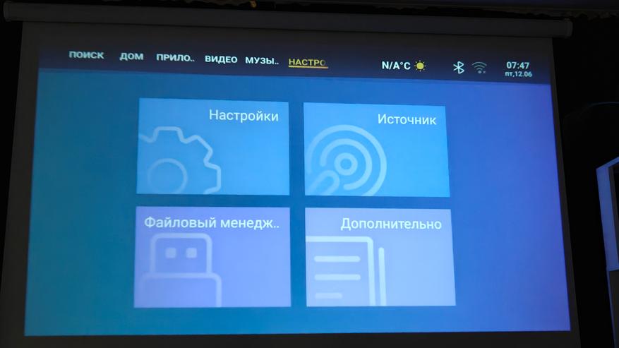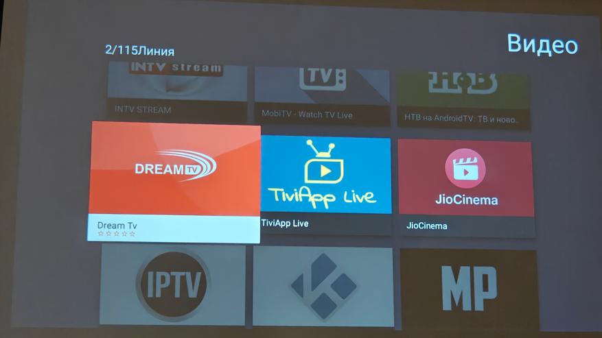 Но радует, что проектор имеет предустановленный маркет приложений, где огромное количество программ на выбор, даже включая наш «Смотрим». Да и спокойно из коробки работает Google Play маркет, через который можно установить большое количество приложений для просмотра, включая даже медиакомбайны типа KODI.