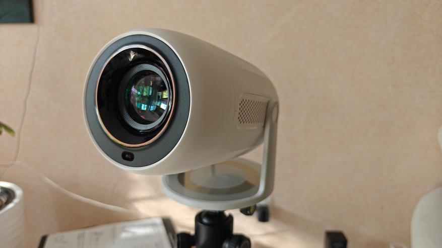 При организации домашнего кинотеатра для вечернего просмотра фильмов с экраном во всю стену мною был выбран проектор от компании Lenovo. Удобно, что он сам фокусируется, выравнивает изображение и на нем можно запустить любой контент. Плюс он выделяется своtй уникальной формой в виде цилиндра на кронштейне. Он компактный и может быть расположен абсолютно везде.