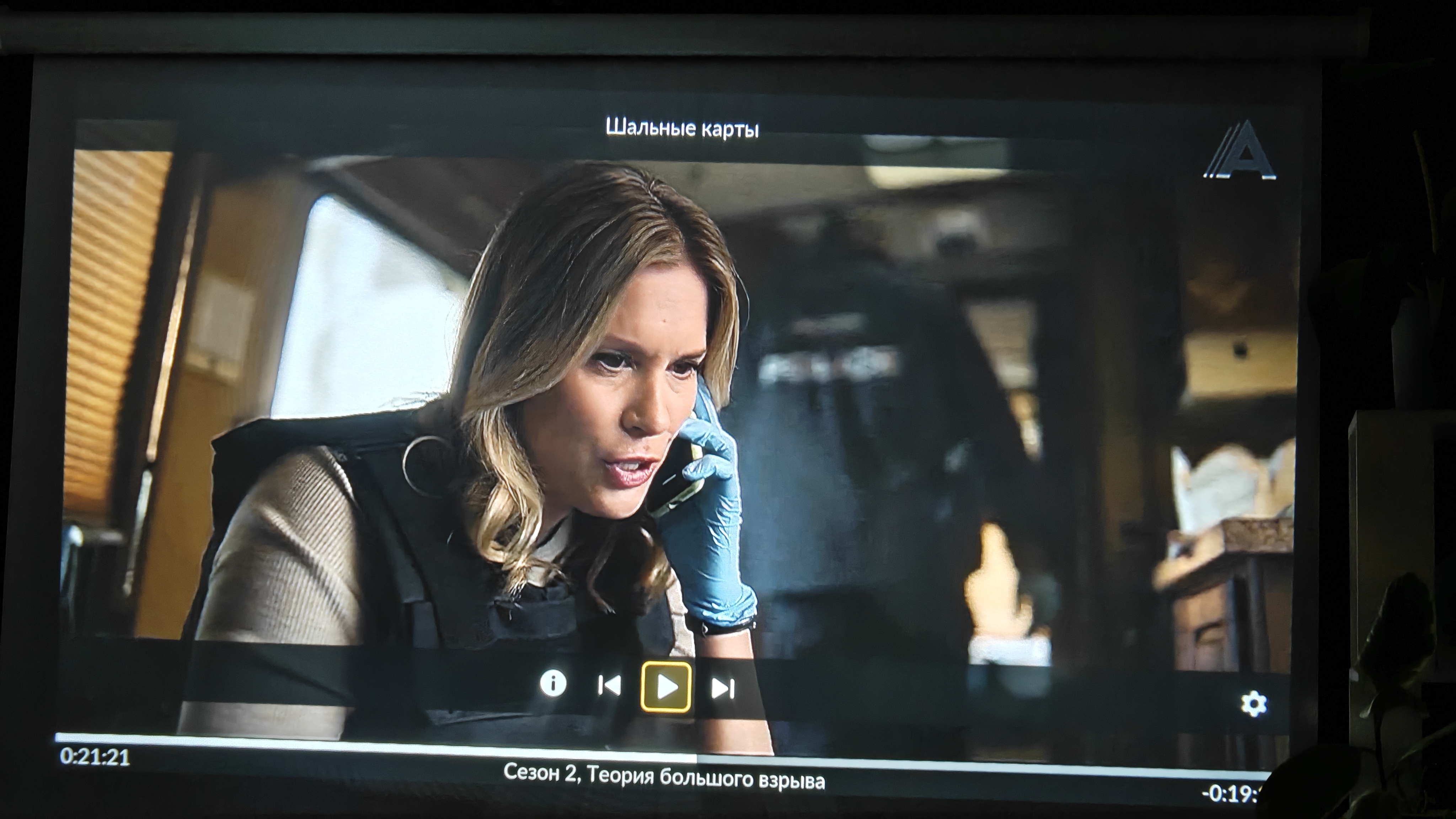 При ночной темноте яркости проектора вполне хватает для просмотра фильмов и передач на большом экране. Можно спокойно просматривать любой контент с онлайн кинотеатров или с накопителей.