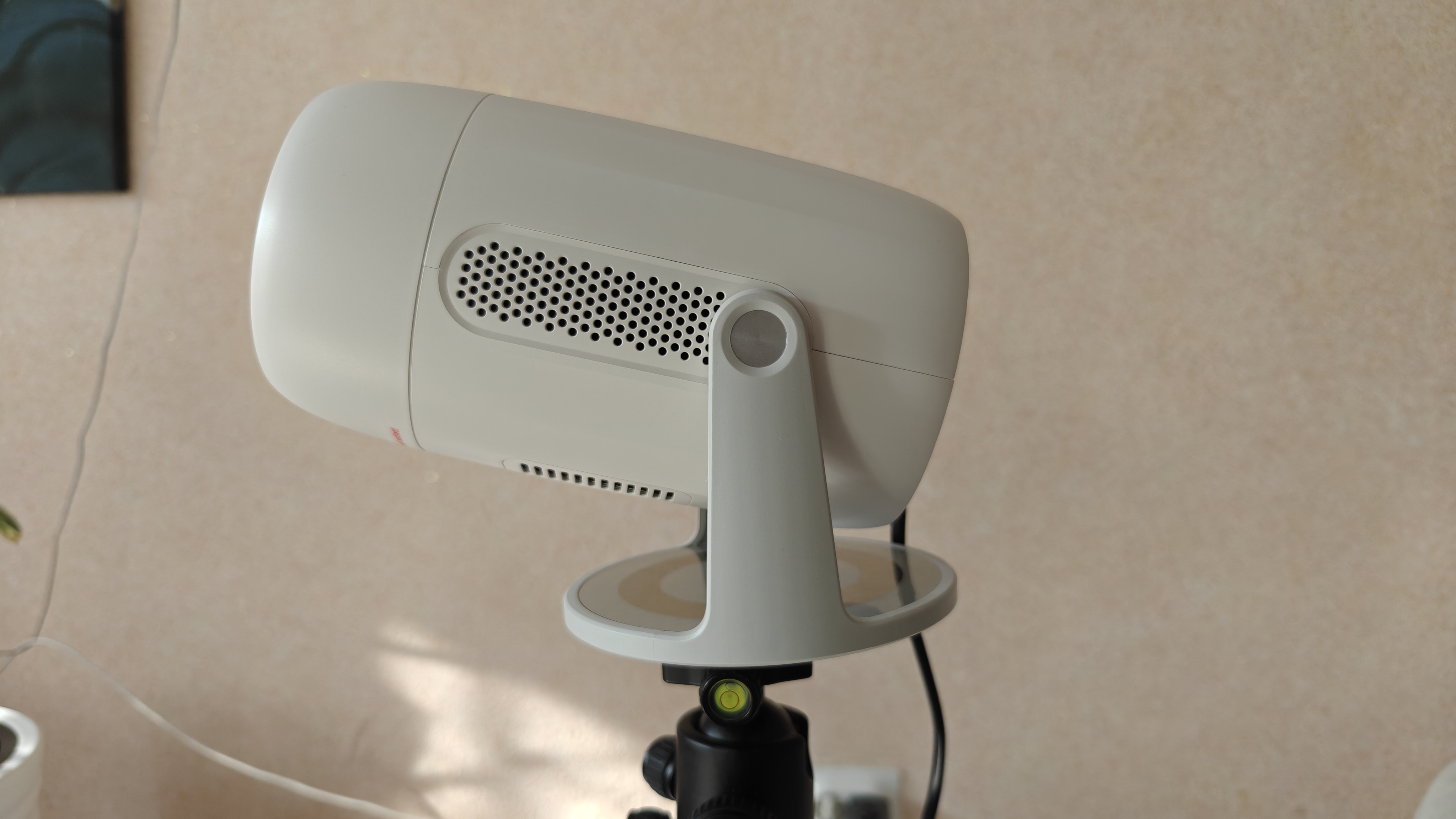 Огромное удобство этого проектора в том, что его можно разместить просто как вам угодно. Можно поставить на стол, можно подвесить под потолком или установить на штативе. На нижней платформе кронштейна как раз есть отверстие с резьбой 1/4″ под любой штатив.