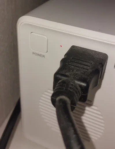 На новой модели кнопка включения находится на задней стороне, возле разъема питания. На предыдущей модели кнопки управления находятся на верхней части корпуса, а в новой их вообще нет. Если пульт будет потерян, то Wanbo X5 Air сможет нормально работать только в режиме HDMI, и только если ранее было активировано автоматическое подключения по HDMI при включении проектора.
