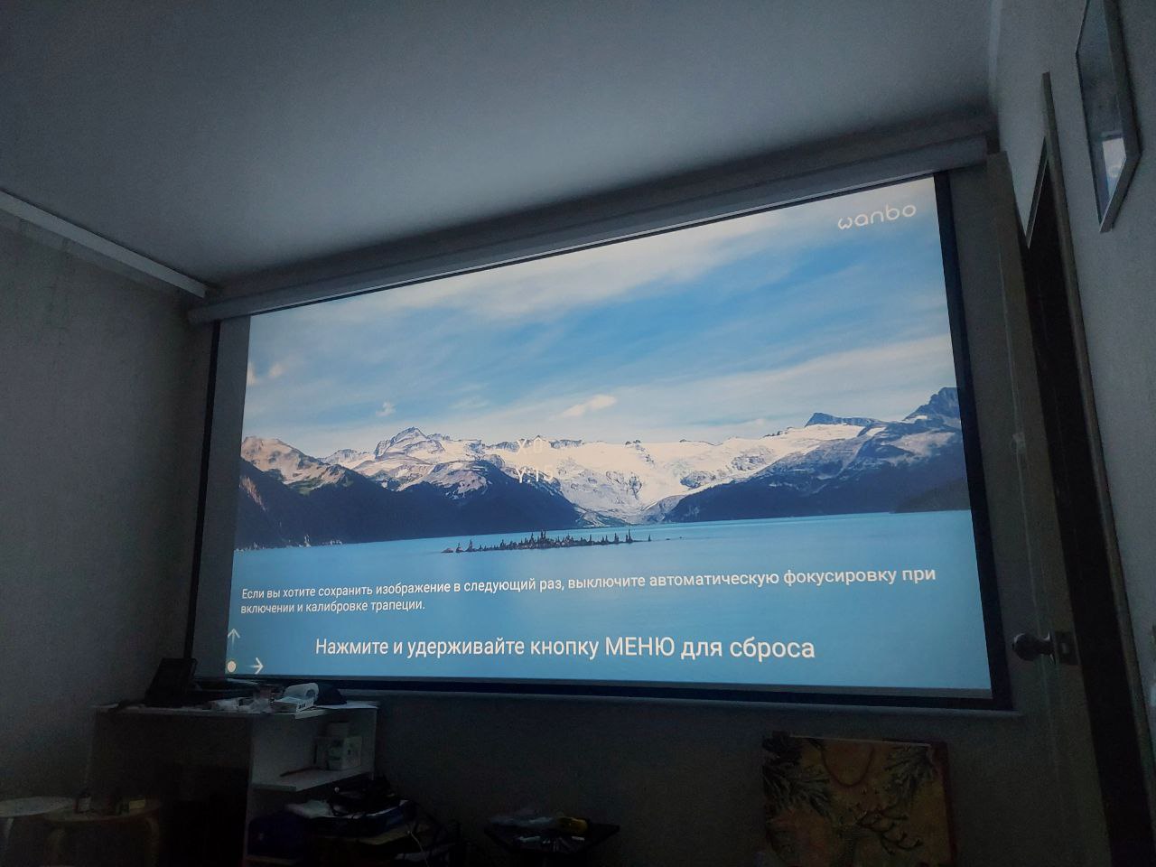 Сразу скажу — чтобы получить детализированную и яркую картинку, придется хорошо затемнить комнату. Если вы ищете проектор до 30 000 рублей, важно понимать: такие модели рассчитаны на использование исключительно в затемненных помещениях. Яркость Wanbo X5 Air составляет 1100 люменов, чего недостаточно для борьбы с дневным светом. Даже при полуоткрытых шторах изображение станет блеклым, а черный цвет превратится в серый.