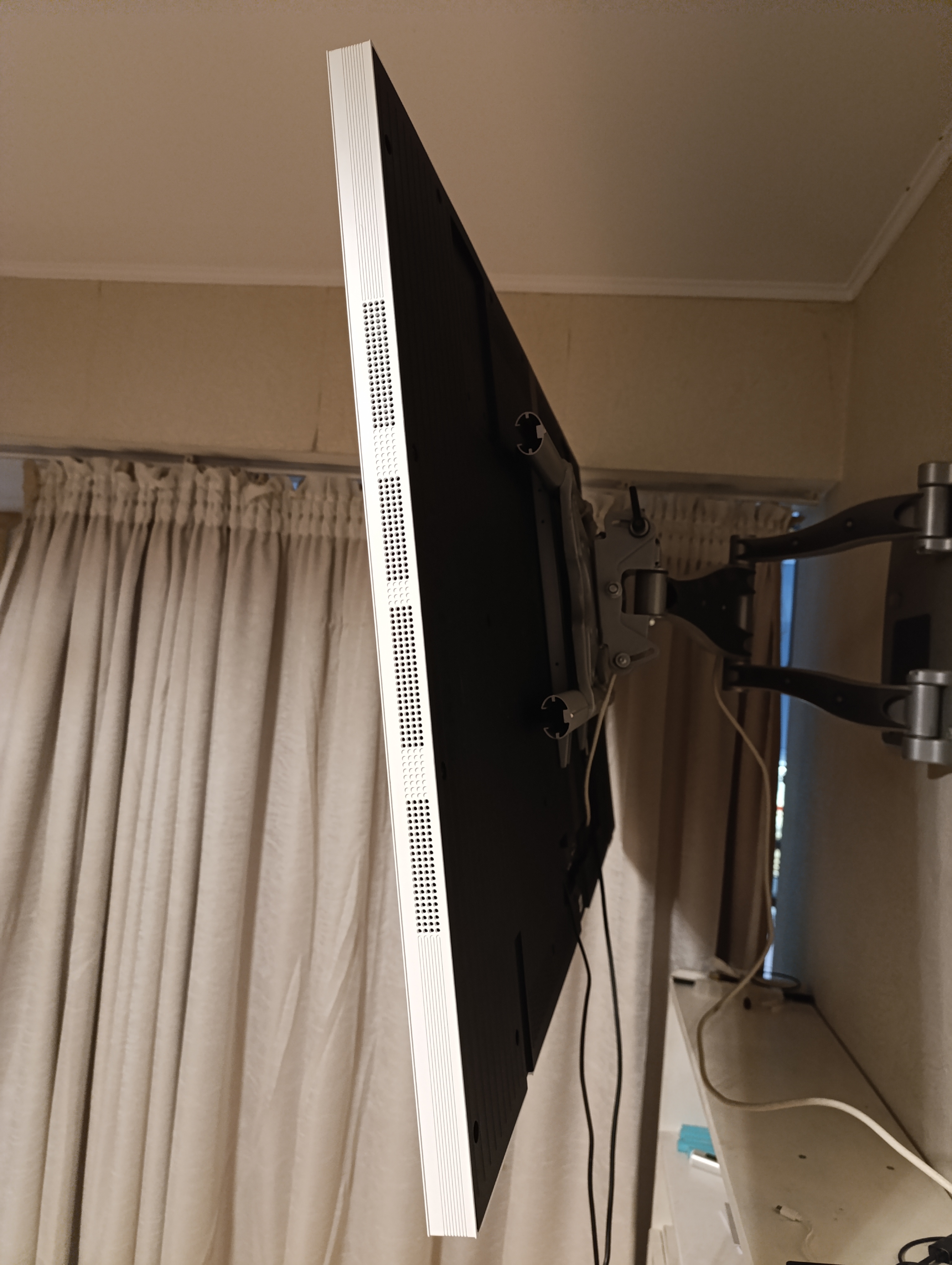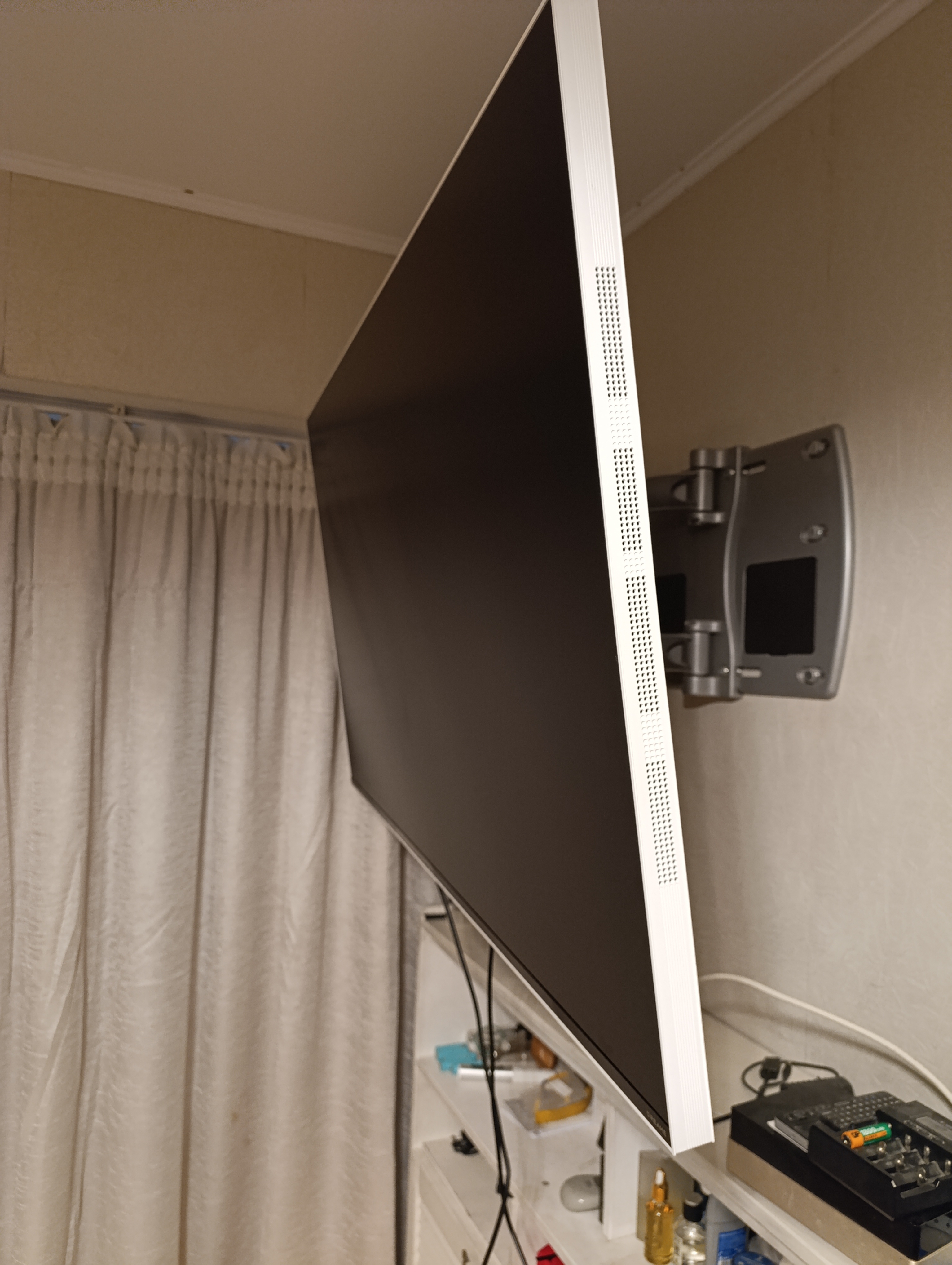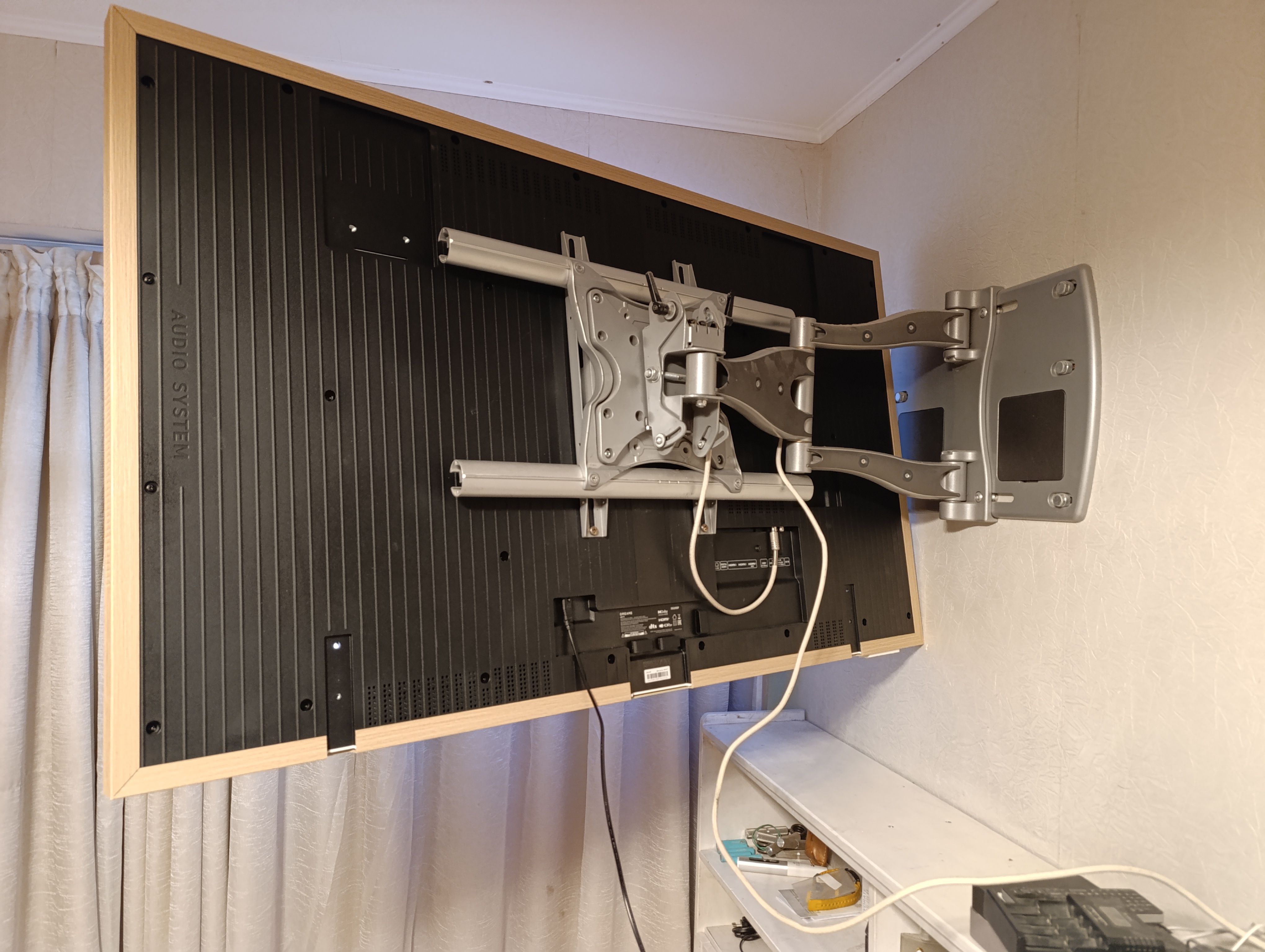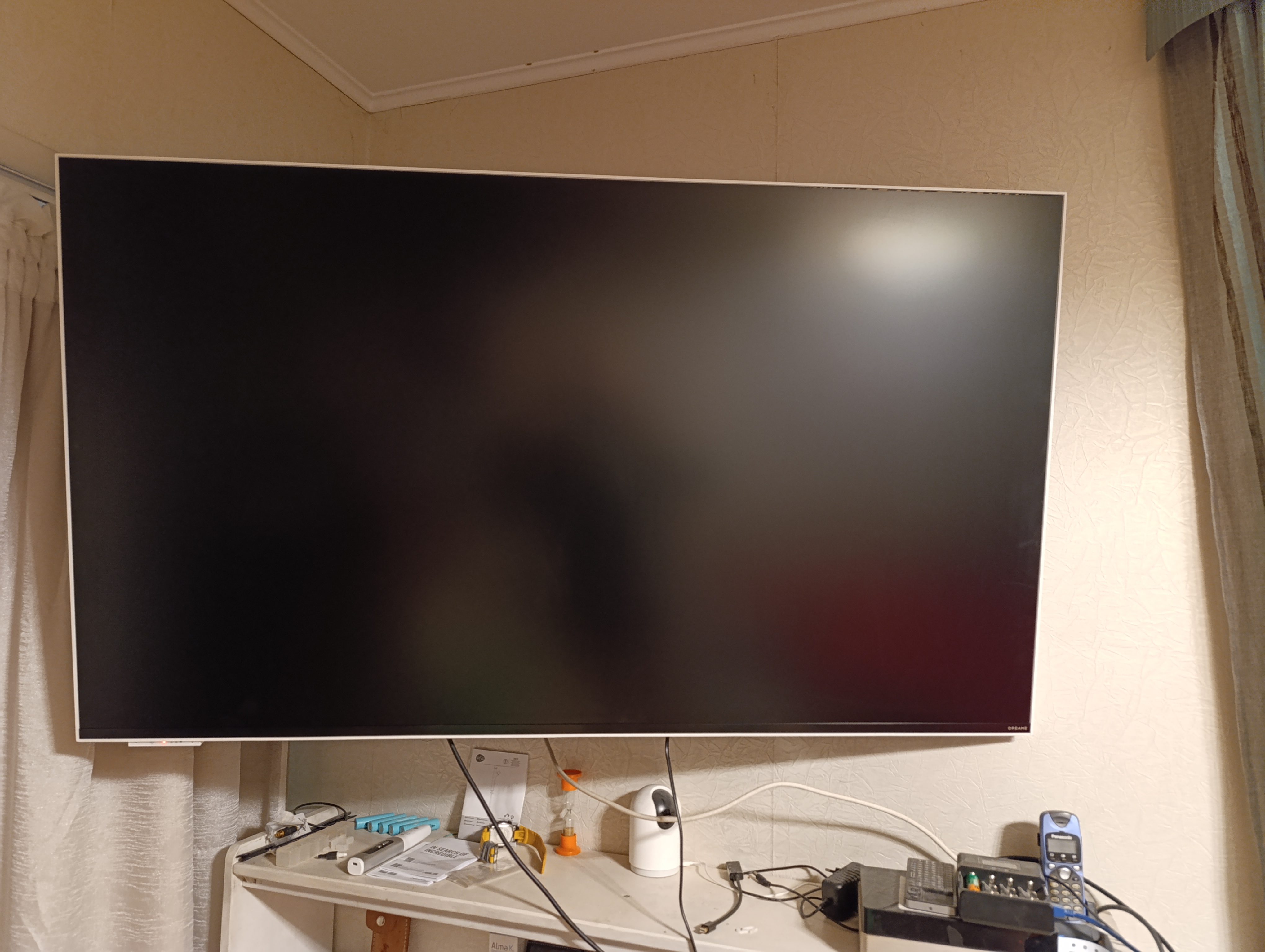 Я много лет пользуюсь мощнейшим поворотным кронштейном OmniMount (к сожалению, снятым с производства), позволяющим поворачивать телевизор в двух плоскостях и немного менять его наклон. Поэтому вопрос, куда устанавливать Dreame Q100F у меня не возникал. Результатом — доволен.
