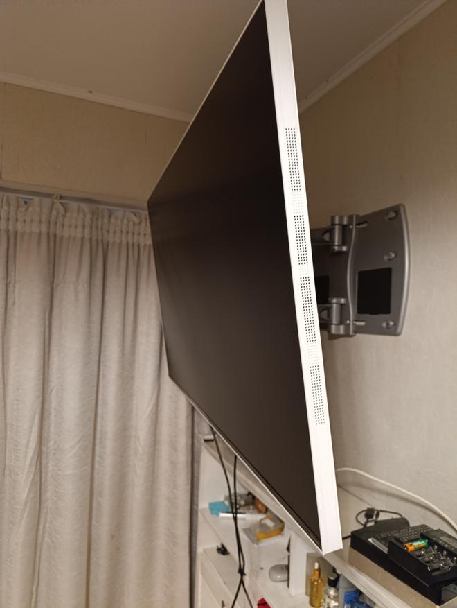 Dreame позаботились и снабдили Q100F специальными кронштейнами для крепления телевизора вплотную к стене. Они просто устанавливаются и позволяют быстро снять телевизор при необходимости. Магниты на кронштейнах плотно прижимают телевизор к стене, а специально прилагающиеся резиновые буфера, устанавливаемые в гнезда на задней панели, не позволяют телевизору контактировать со стеной, что могло бы исказить звук.