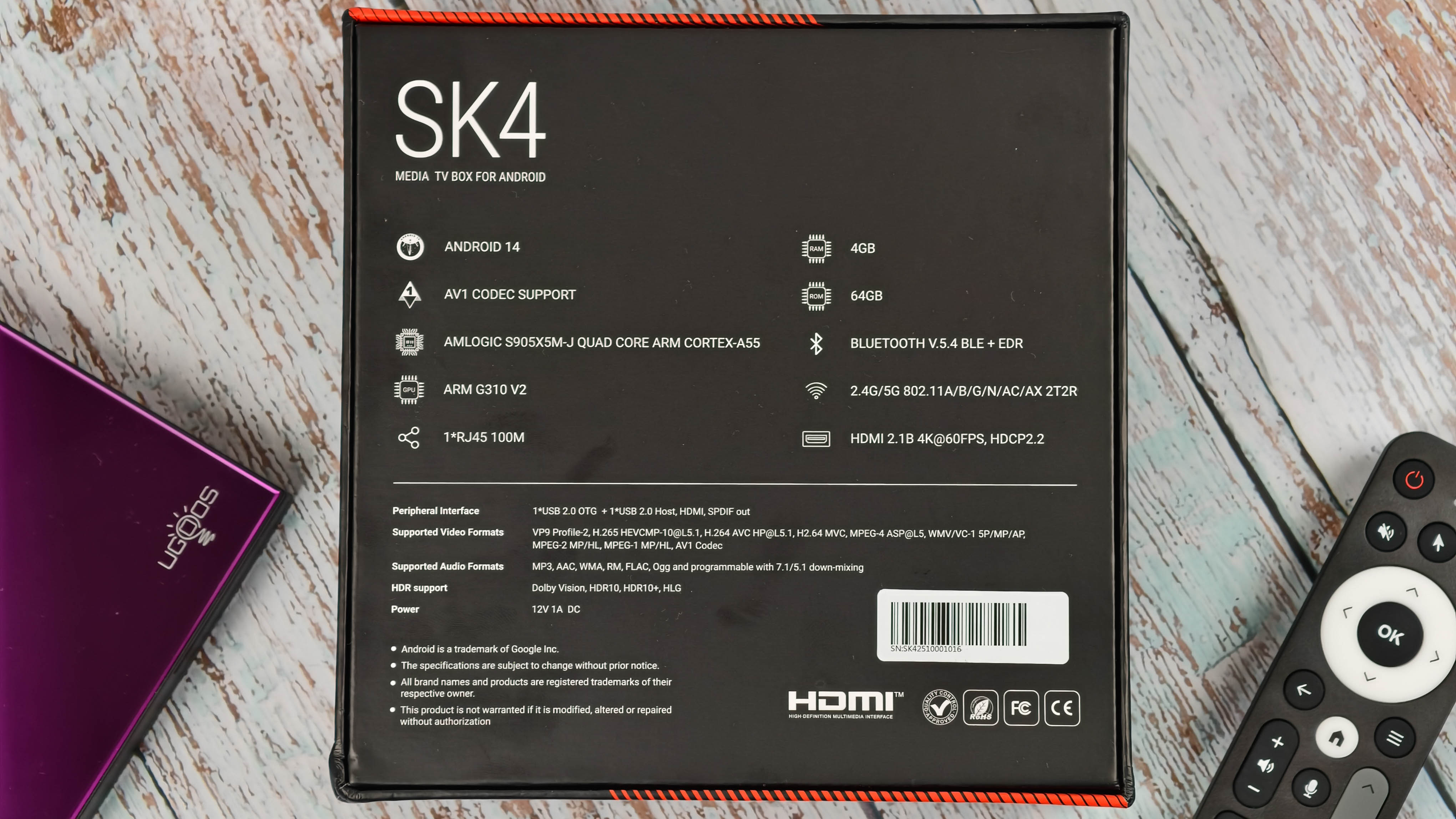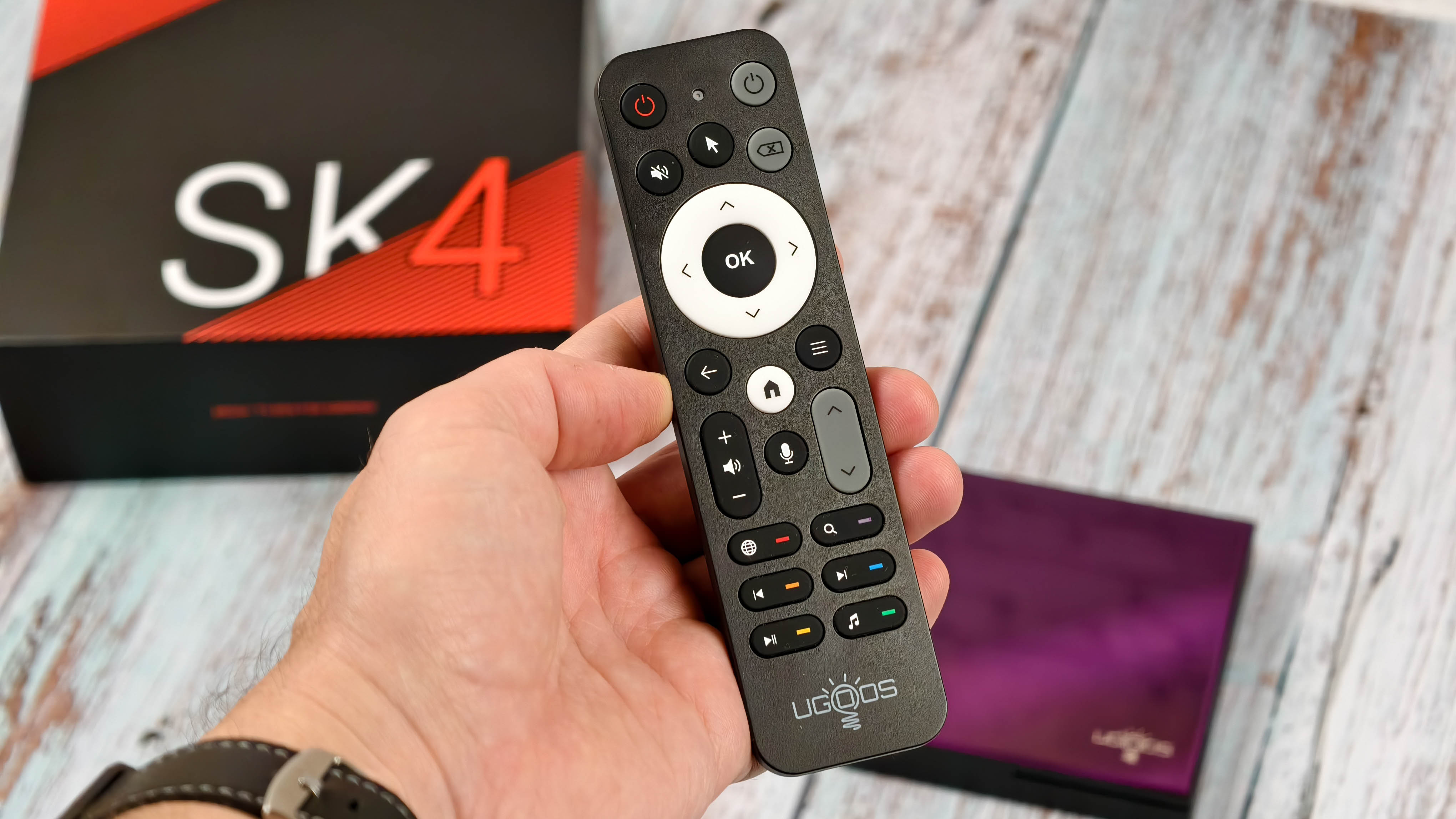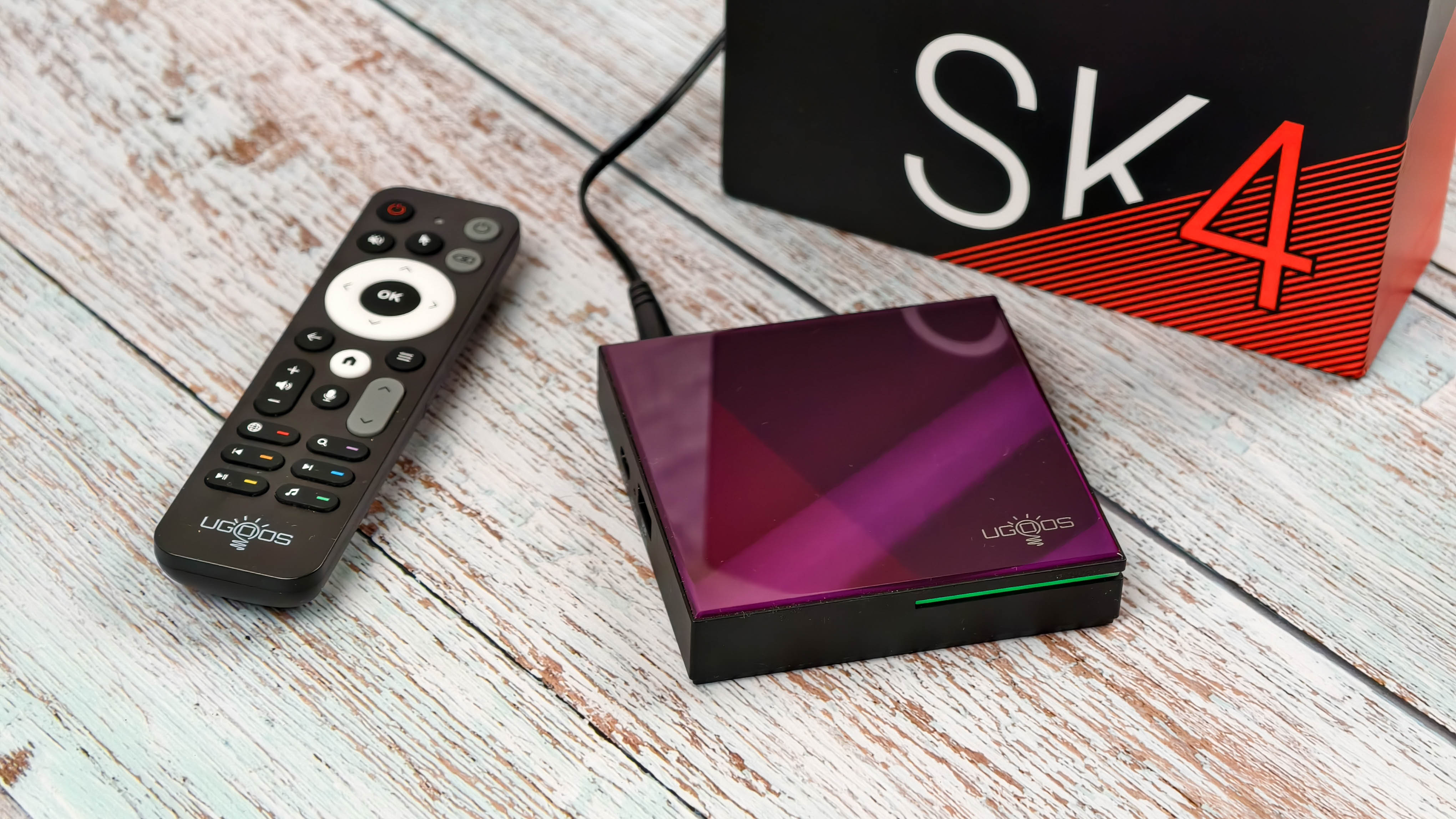 Массивная коробка с крупной надписью SK4 на лицевой стороне в привычном оформлении от Ugoos.