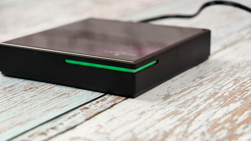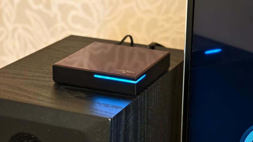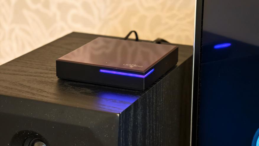 В приставке используется светодиодная подсветка в виде тонкой полоски, выделяющей правый угол. Подсветка равномерная, ненавязчивая и мягкая.
