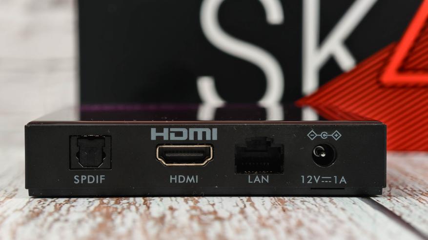 Сзади разместили HDMI, разъем питания и LAN для проводного подключения интернета с интерфейсом 100M. Также есть SPDIF для вывода звука по оптике на аудиосистему или ресивер.