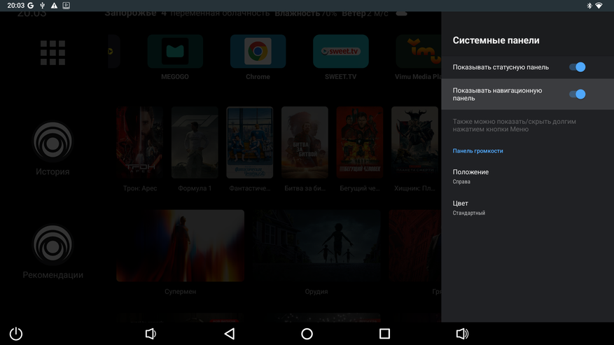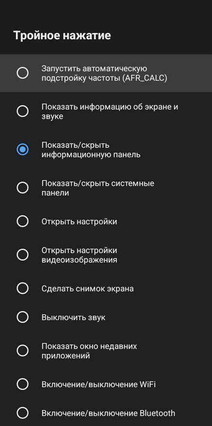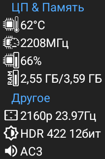 Теперь заглянем в раздел «панели и интерфейс». Здесь мы найдем настройку отображения системных панелей — статусной и навигационной. А также настройки информационной панели, куда может выводиться: температура процессора, частота, загрузка оперативной памяти и другие показатели. Положение информационной панели и прозрачность можно отрегулировать по своему усмотрению. Среди прочего она может показывать такие полезные данные, как текущий режим HDR, частоту и в каком формате выводится звук.