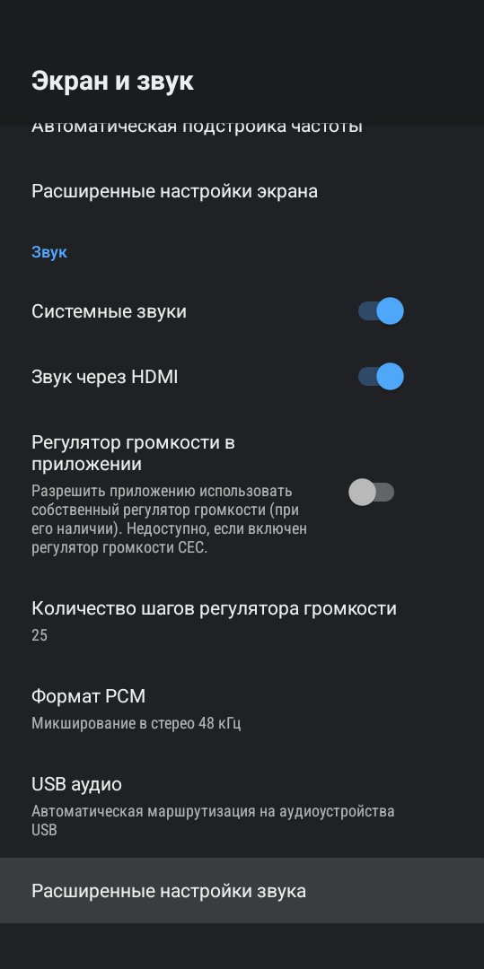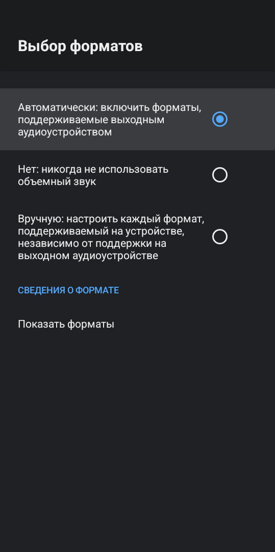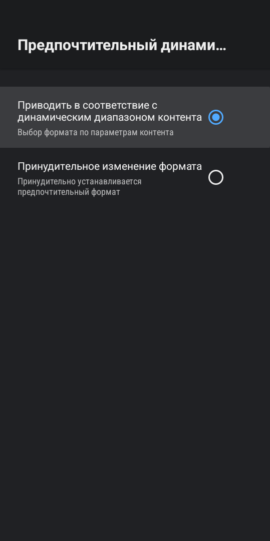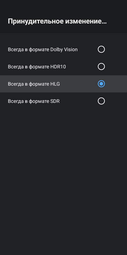 Также есть возможность принудительно включить нужный режим: HDR10, HLG, Dolby Vision или SDR. По звуку имеем поддержку многоканального звука вплоть до Dolby Atmos. Здесь есть как ручное переключение режима звучания, так и автоматическое переключение в зависимости от возможности вашей аудиосистемы и контента.