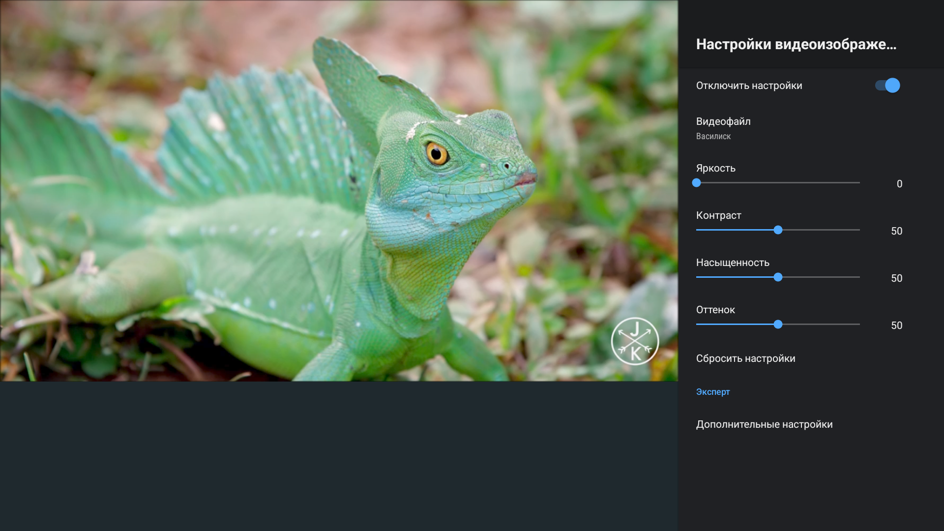 Отдельно стоит рассказать о настройке и улучшении изображения. Помимо стандартных параметров, вроде ручной регулировки яркости, контраста, насыщенности и оттенка есть раздел «эксперт», который нас интересует больше всего.