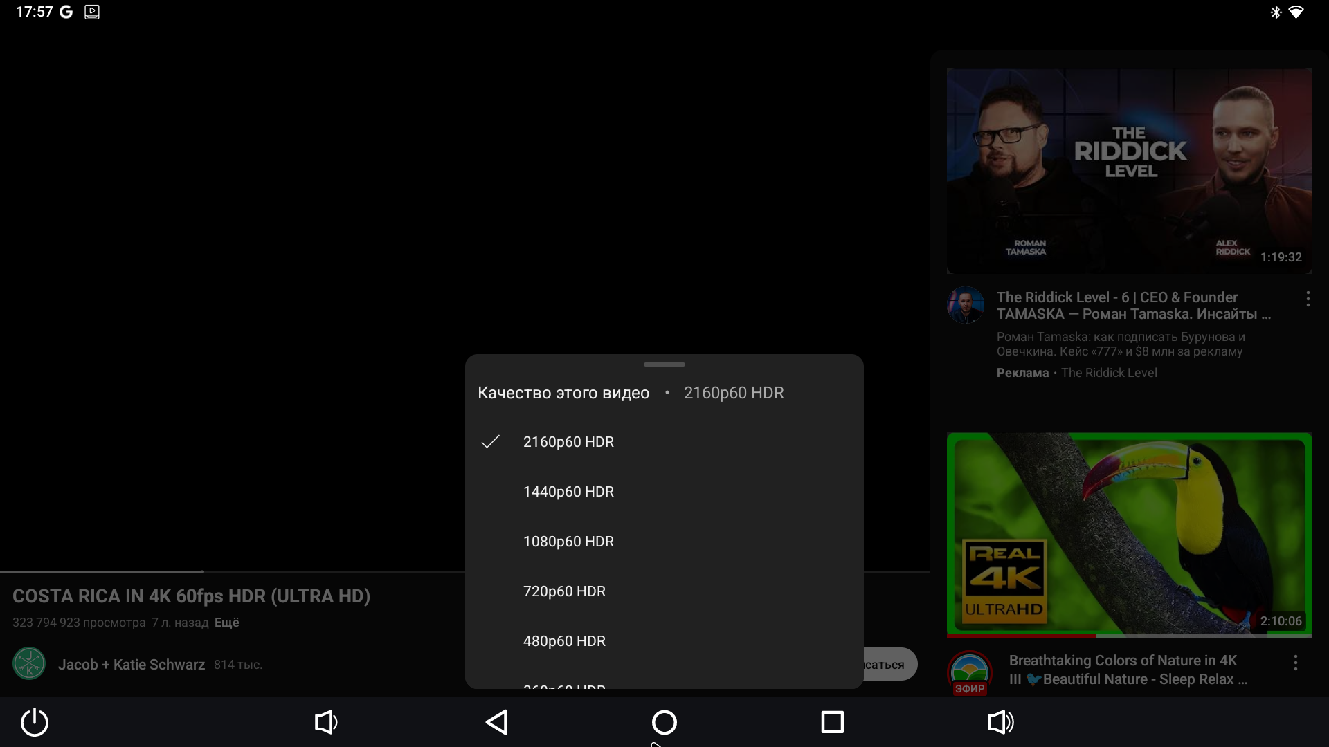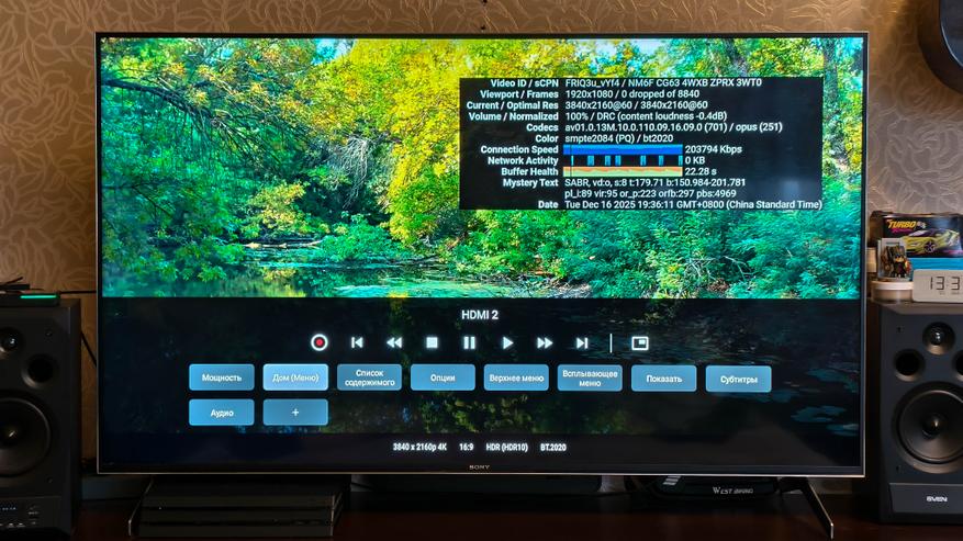 Собственно по воспроизведению мультимедиа вообще никаких вопросов. Проигрывается все, в любом качестве, с любыми частотами, с поддержкой HDR вплоть до Dolby Vision и многоканальным звуком вплоть до Dolby Atmos. В Youtube поддерживается качество вплоть до 4К HDR\60 FPS, воспроизведение плавное, пропуска кадров нет даже на тяжелых AV1 роликах.