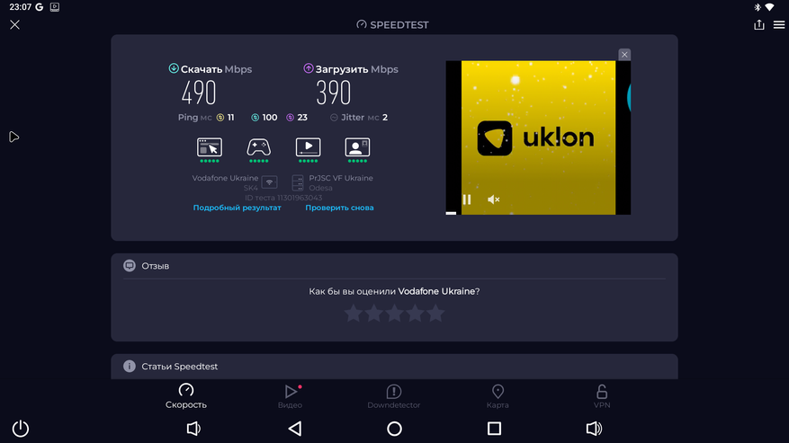 Стабильная и безотказная работа здесь возможна, в том числе и за счет крутого WiFi 6 модуля с поддержкой 2T2R, который работает в стандарте 802.11AX и поддерживает скорость соединения до 1200 Mbps. Реальная скорость скачивания в сети составляет 566 Mbps. А тесты вроде Speedtest показывают около 500 Mbps. Очень хорошо, как для WiFi и это полностью перекрывает такой недочет, как LAN100. Даже при значительном удалении от роутера, когда телевизор расположен через несколько комнат и есть преграды в виде стен, скорость не опускается ниже 350 Mbps. Один из лучших WiFi, которые мне попадались за последние несколько лет.