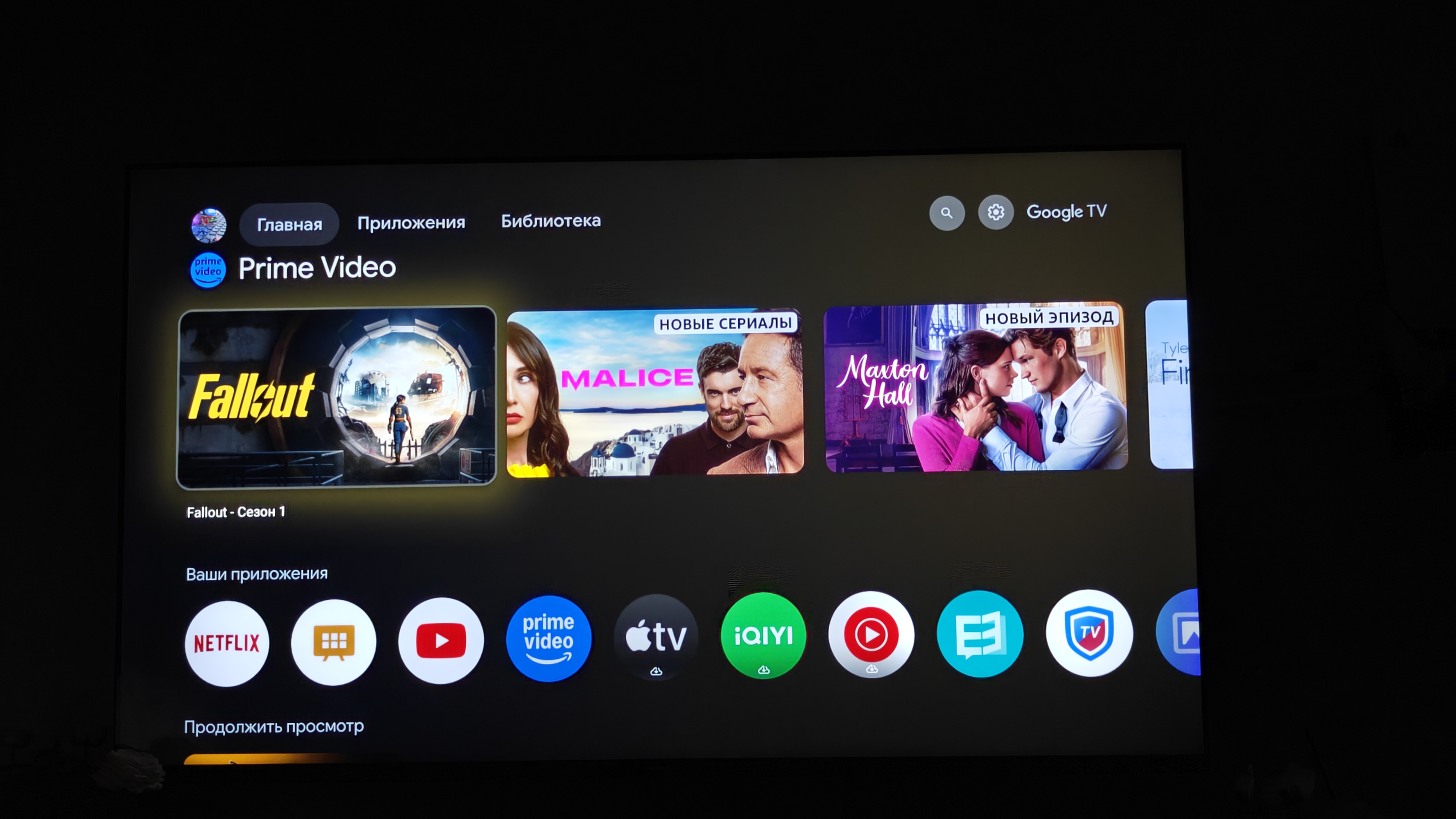 Отдельно охватим голосовой поиск. Он работает как в системе для поиска видео на Youtube или среди приложений на плей маркете, так и внутри приложений. Даже сторонние установленные приложения поддерживают голосовой поиск, что очень удобно, к примеру для поиска фильмов внутри платформы. Разумеется, все ярлыки в интерфейсе настраиваются на ваш вкус. Также если вы смотрели какой-то контент, он автоматически выводится на главную, чтобы было проще его найти и досмотреть. Это очень удобно при просмотре сериалов. Это справедливо даже для неофициально поддерживаемых приложений. Есть привычные функции трансляции приложений на большой экран, даже есть встроенное ПО.