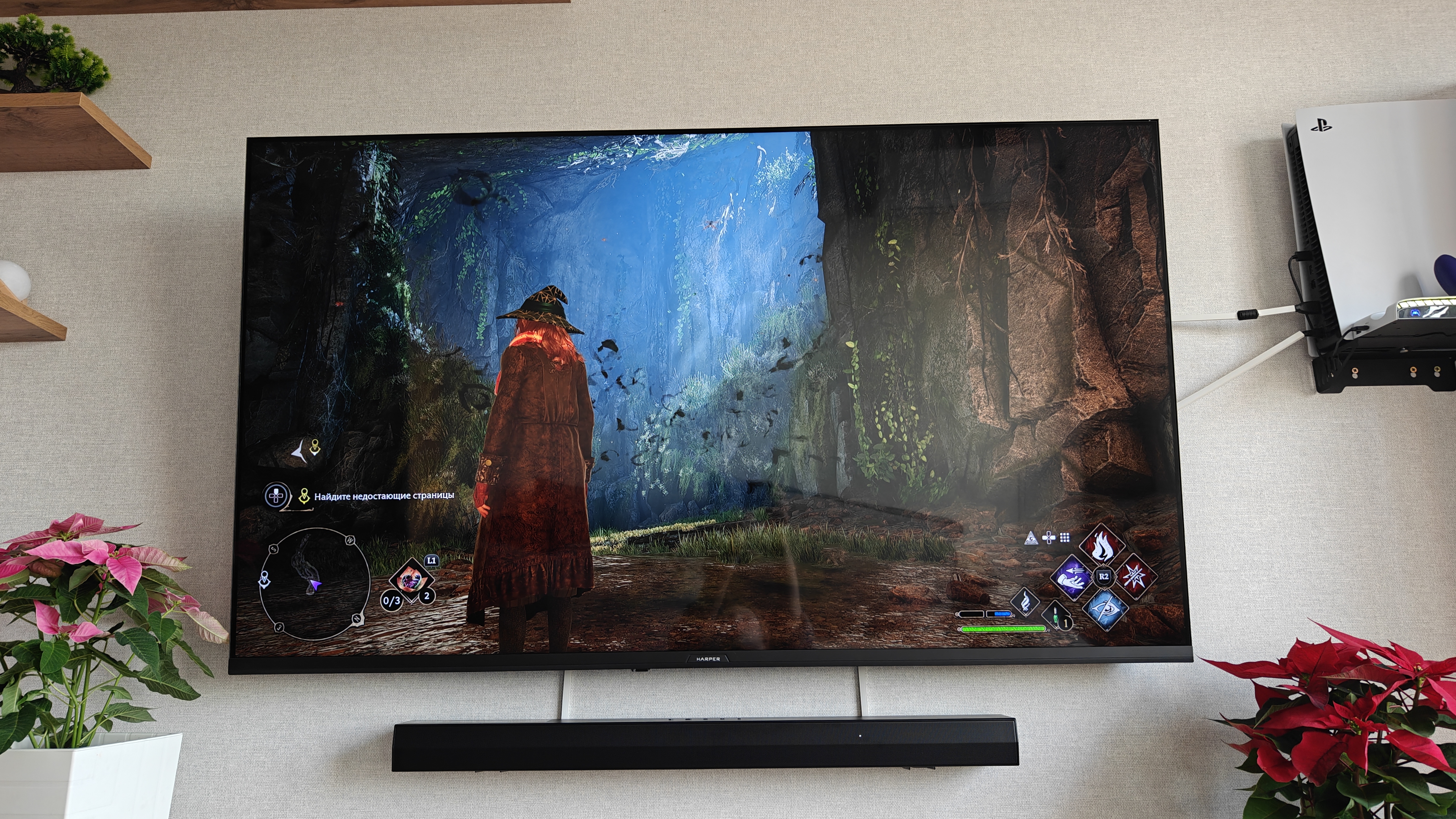 В очень мрачном королевстве… В общем, в мрачной вселенной Хогвартса тоже можно играть без прищуривания и рассматривать силуэты замка на горизонте даже ночью. Заклинания смотрятся ярко, а картинка смотрится очень атмосферно. QLED технология тут отдувается по полной, пытаясь передать тысячи деталей отрисовки рун на стенах.