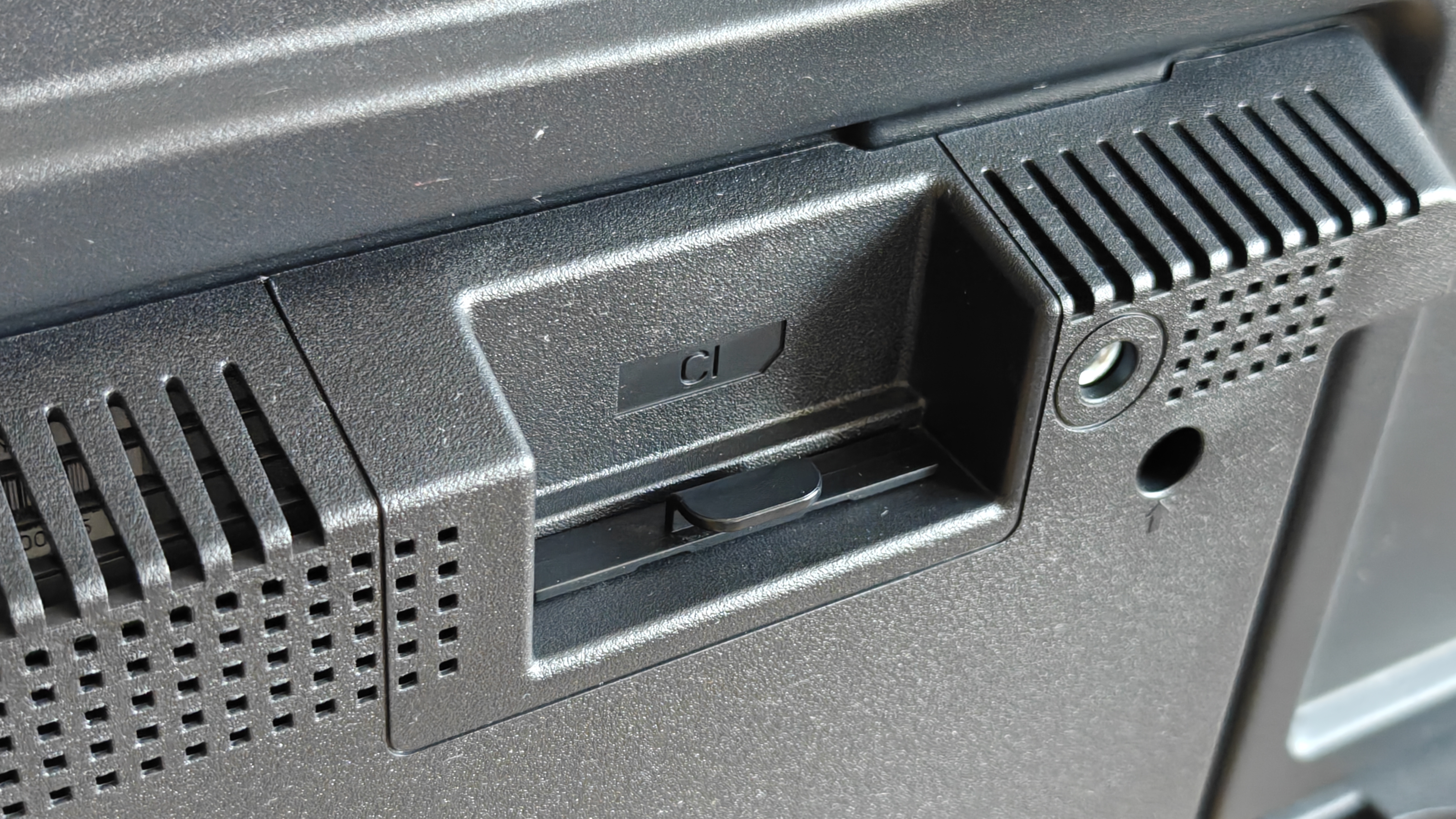 Верхний разъем под заглушкой — это возможность установки PCM-CI карт. Справа — разъем питания. Хорошо, что кабель съемный.