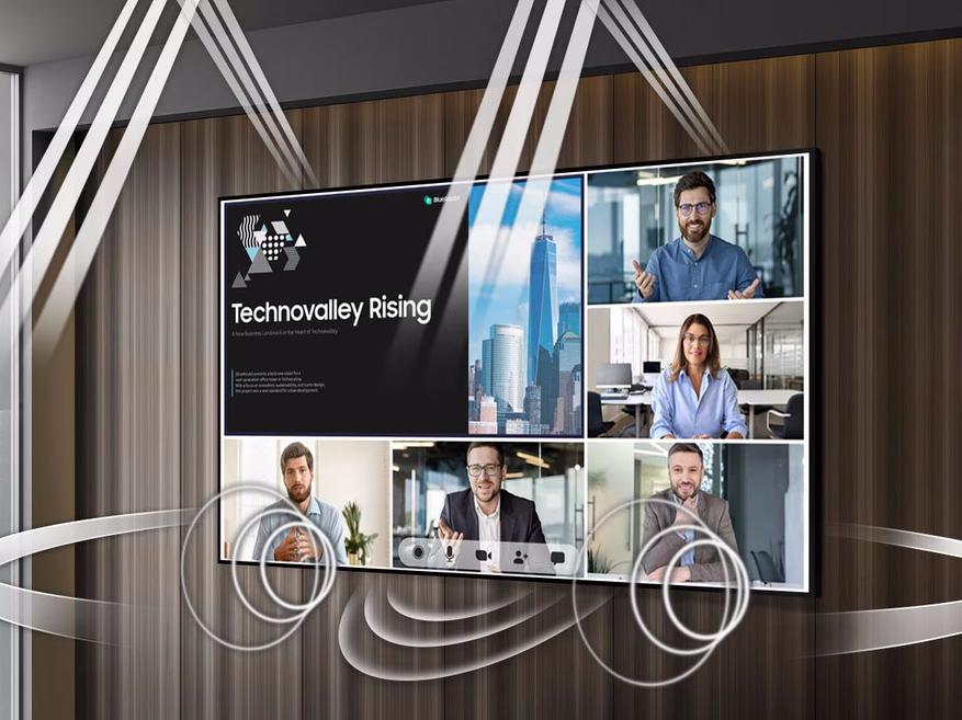 Дисплей, весящий 80 кг, оснащен двумя портами HDMI и одним разъемом DisplayPort. Интерфейс RS232 представлен как в виде входа, так и выхода, а для сетевого подключения предусмотрены разъемы RJ45 и Wi-Fi. Дополнительно имеются два порта USB-A. В качестве операционной системы используется Tizen. Встроена аудиосистема формата 4.2.2 с общей заявленной мощностью 60 Вт.