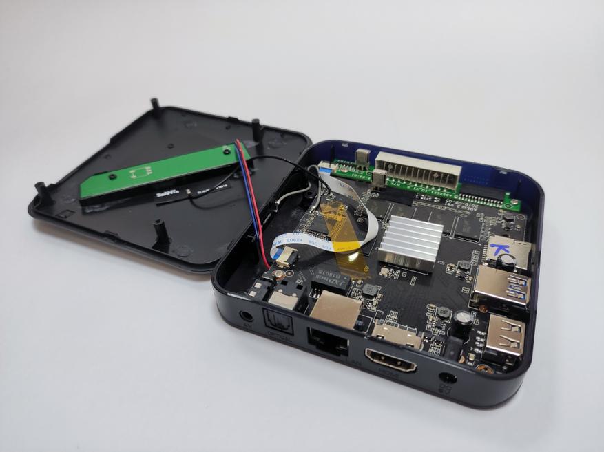 В каждом из тв-боксов по два инфракрасных ДУ приёмника, на основной плате и на плате индикации. Возможно, такие платы применяются в других моделях без индикации.