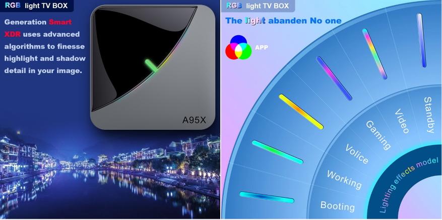 | Дополнительно: | RGB подсветка 64 цвета PLEX, приложения для управления тв-боксом со смартфона. | RGB подсветка 6 цветов |
